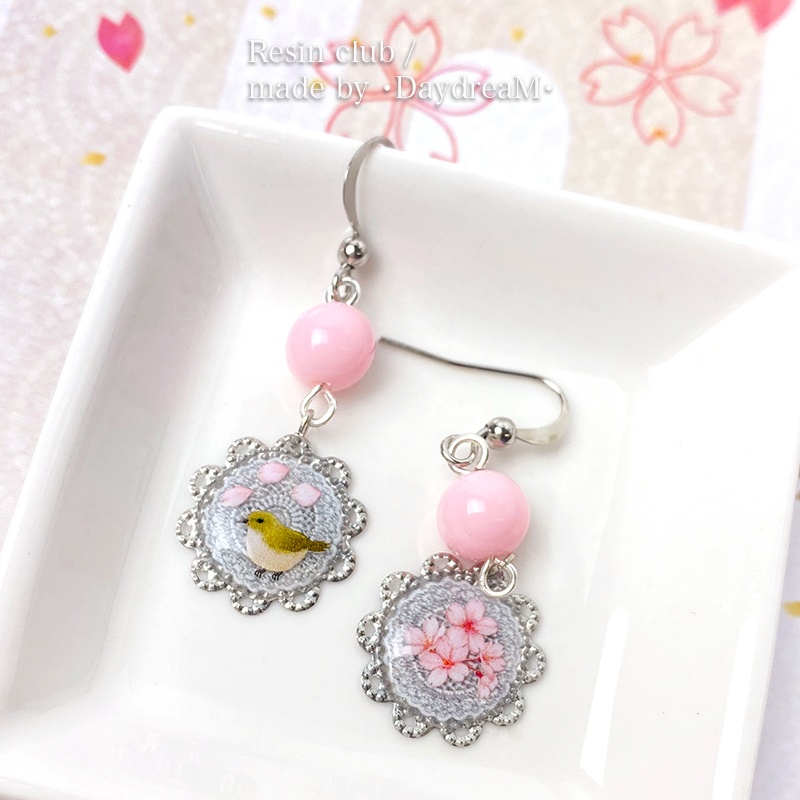 RC-SKR-701 UV resin seal parts ~Resin club~ Cherry blossoms and Japanese warblers ★Double-sided type★ Released in January 2026 (pcs)