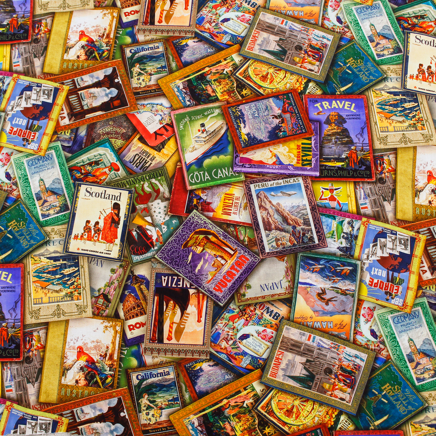 ROB23070-200 ROBERTKAUFMAN Robert Kaufman USA print vintage travel Width approx. 110cm 1m unit (m)