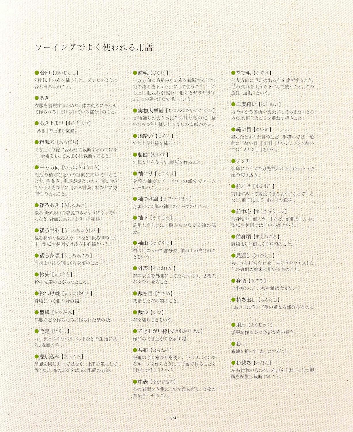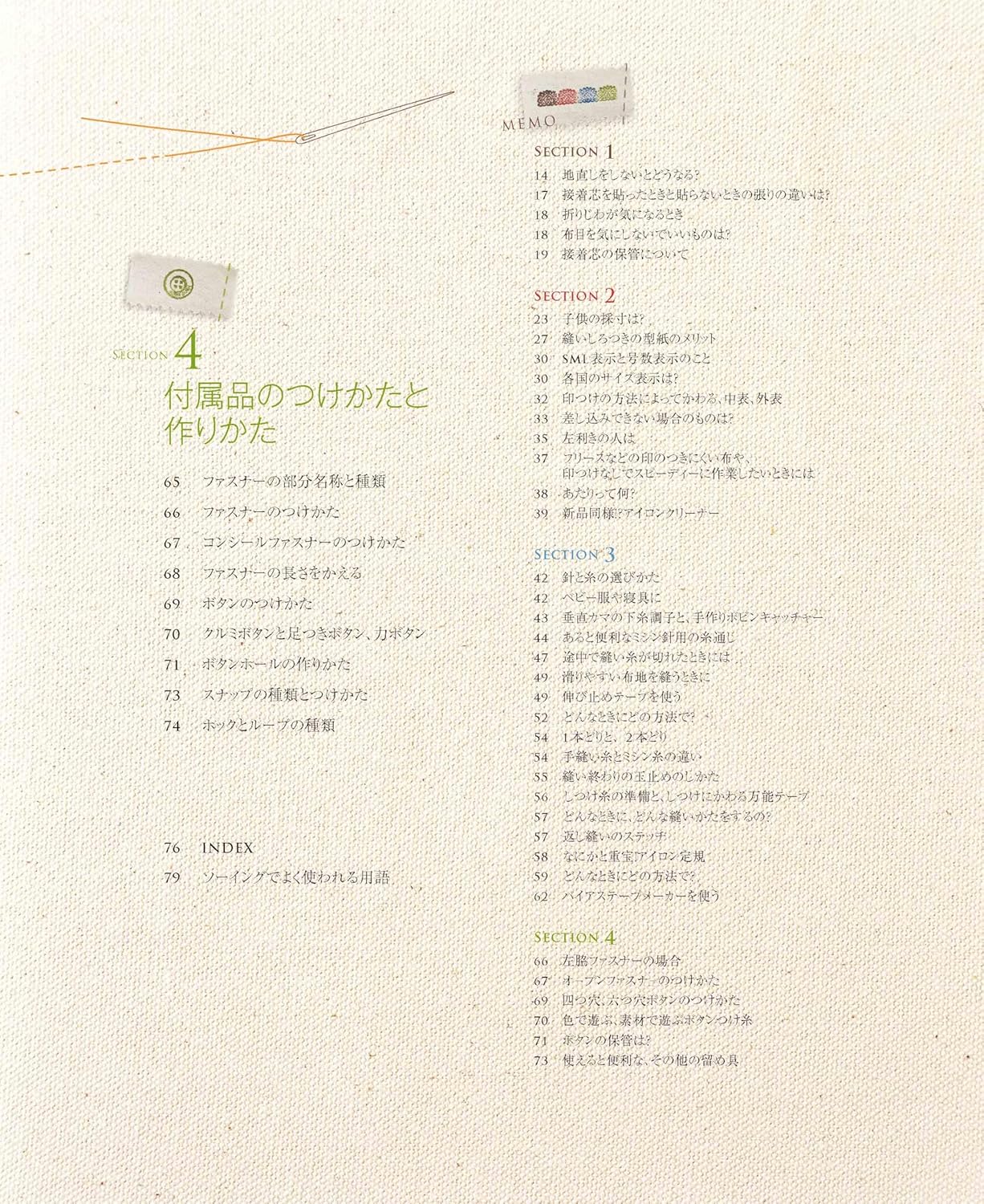 A wealth of illustrations and photos explain everything from basic equipment to fabrics, ironing methods, and sewing machine operating procedures. It also includes many solutions and ideas for frequently asked questions.