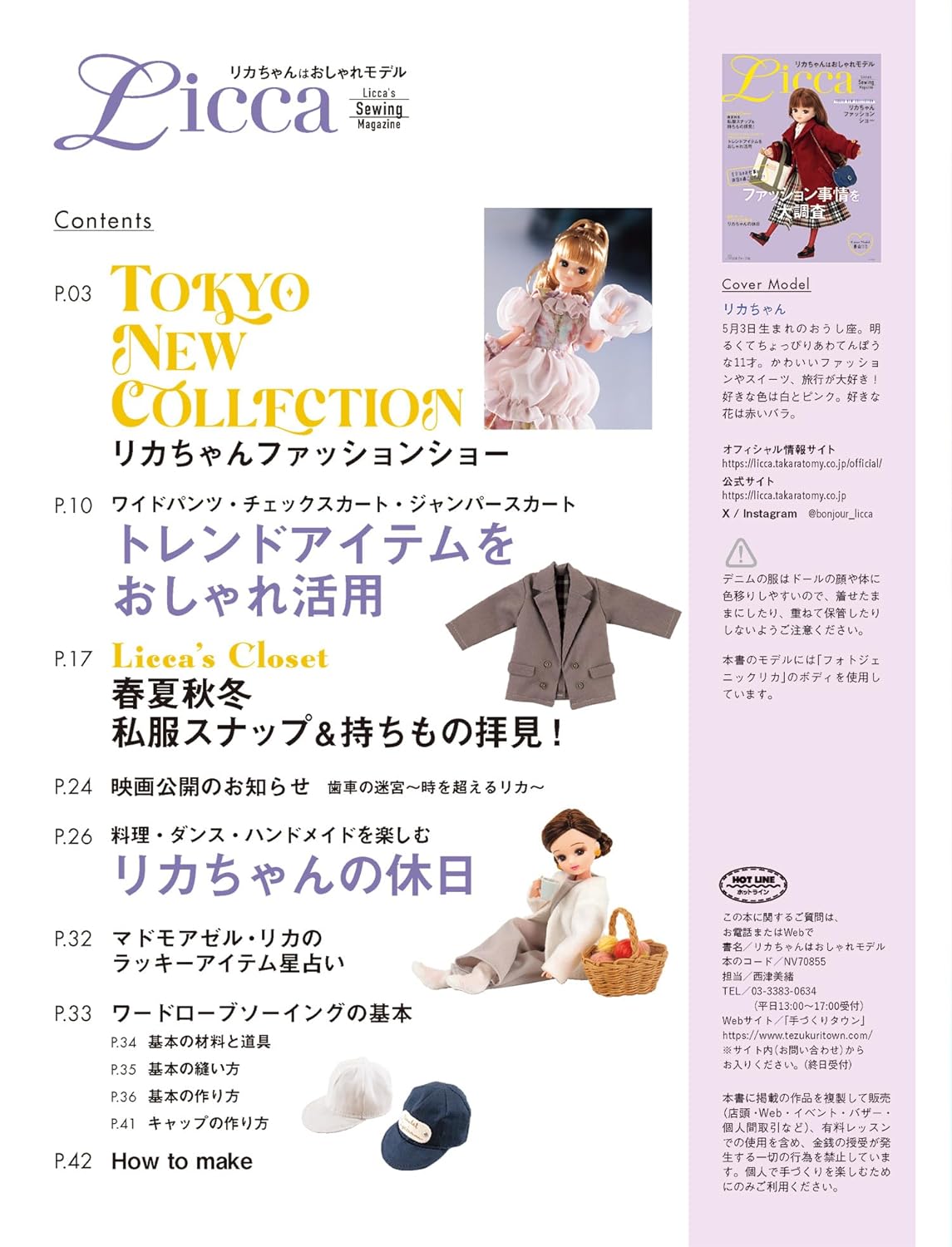 A sewing book that collects fashionable costumes of Licca-chan, who is active as a model, from her private clothes to her lifestyle.