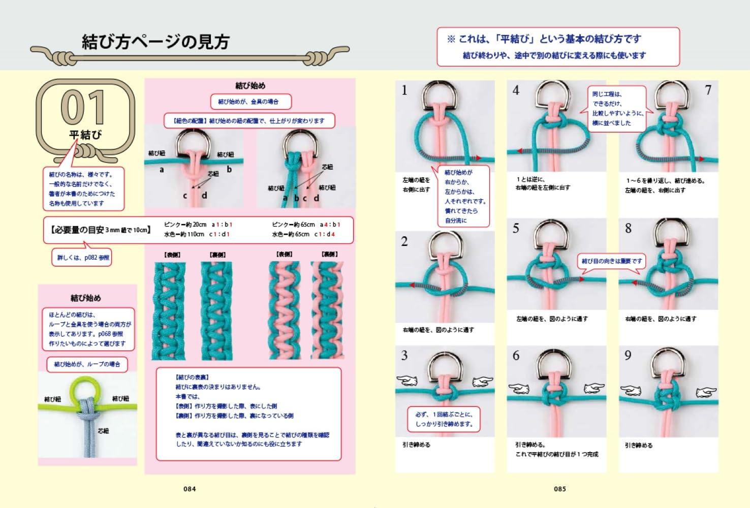 How to read the knot page / Tie in the center / Handle strap with beads / Wrap around / Touching knot / Crossing / Traditional knot, etc.