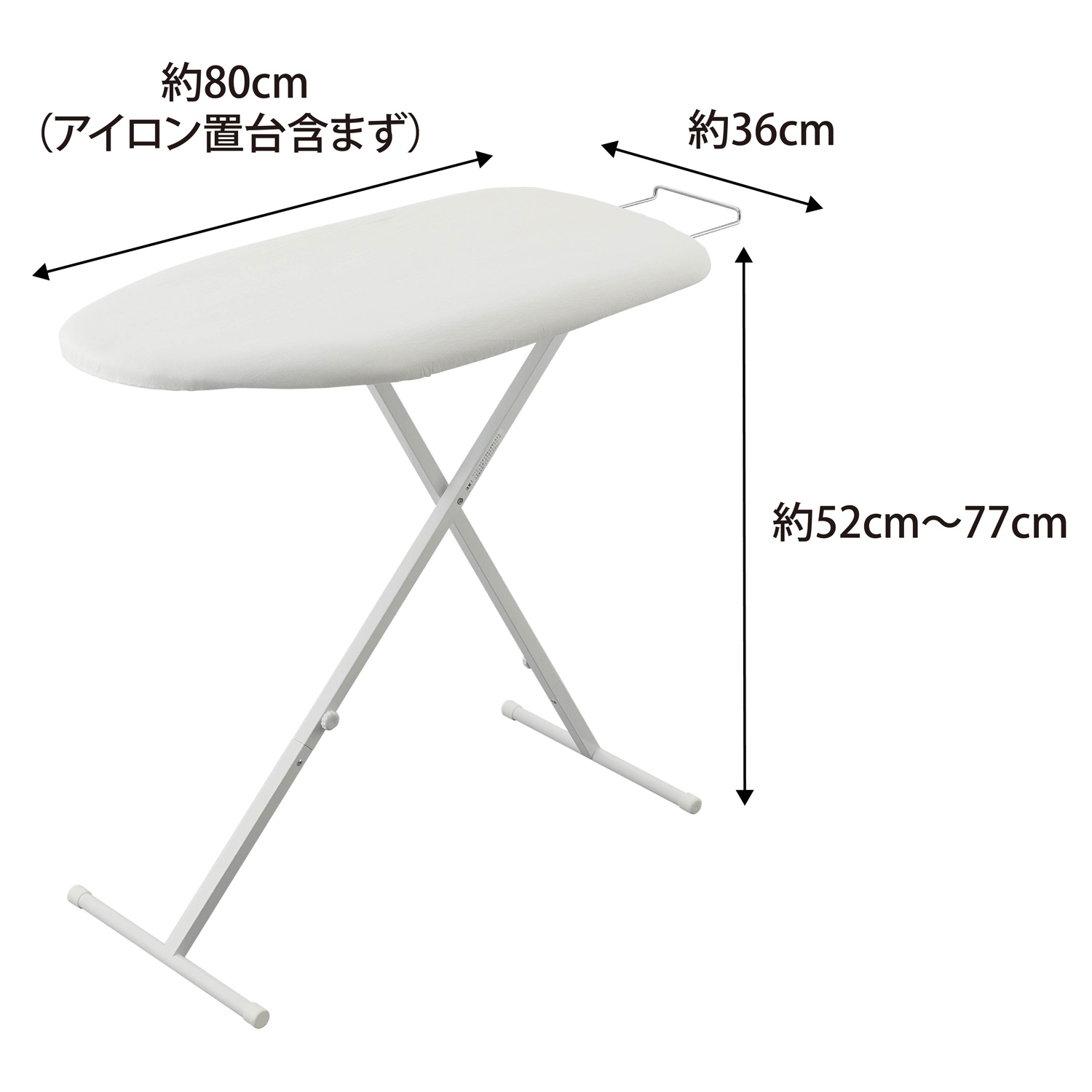 ■Size: Approx. W80 x D36 x H52-77cm (when used) / Approx. W118.5 x D36 x H6cm (when stored)