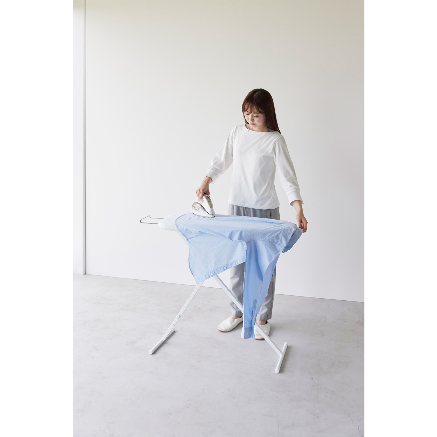 ・You can iron at your favorite height while standing or sitting.
