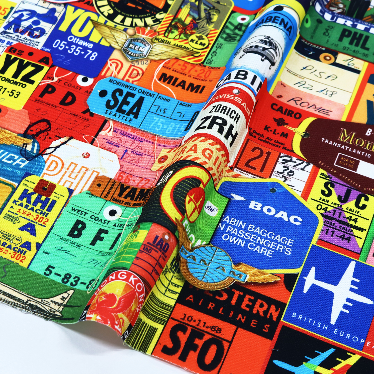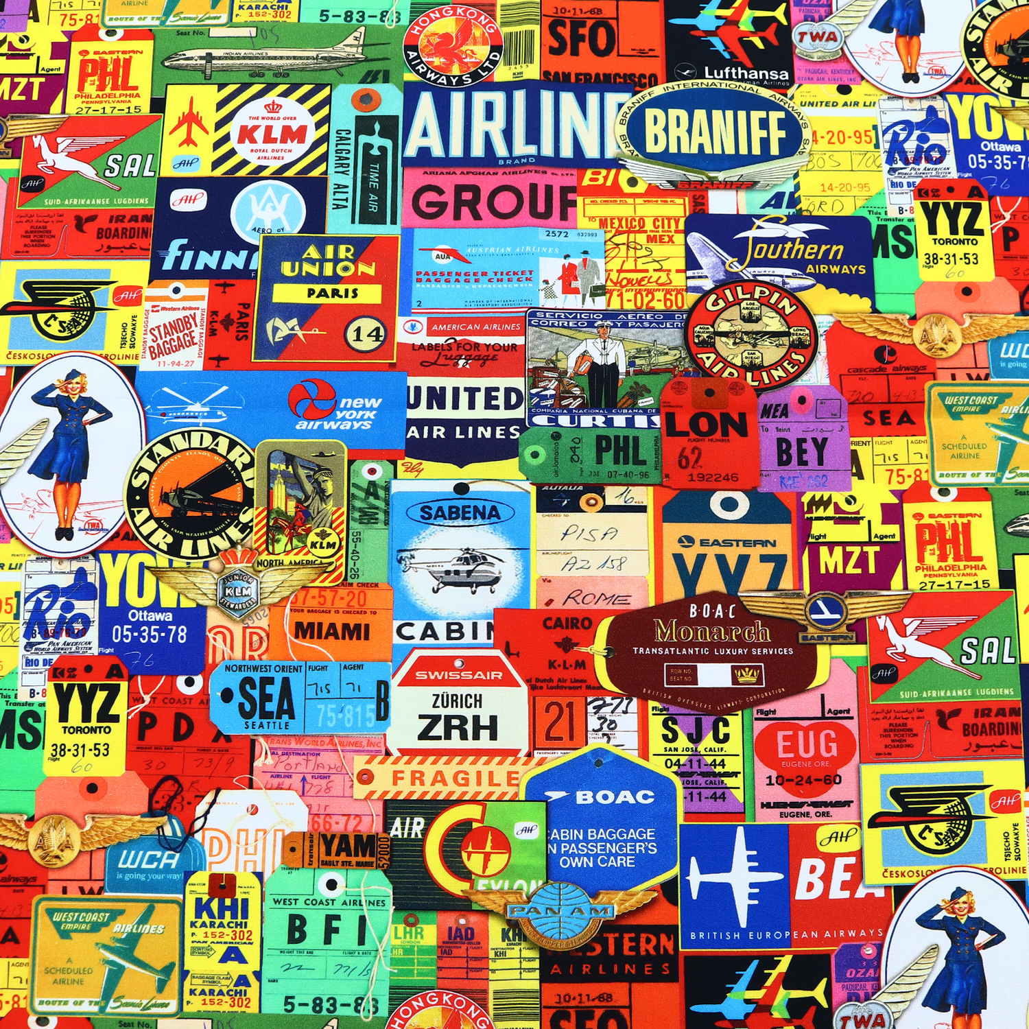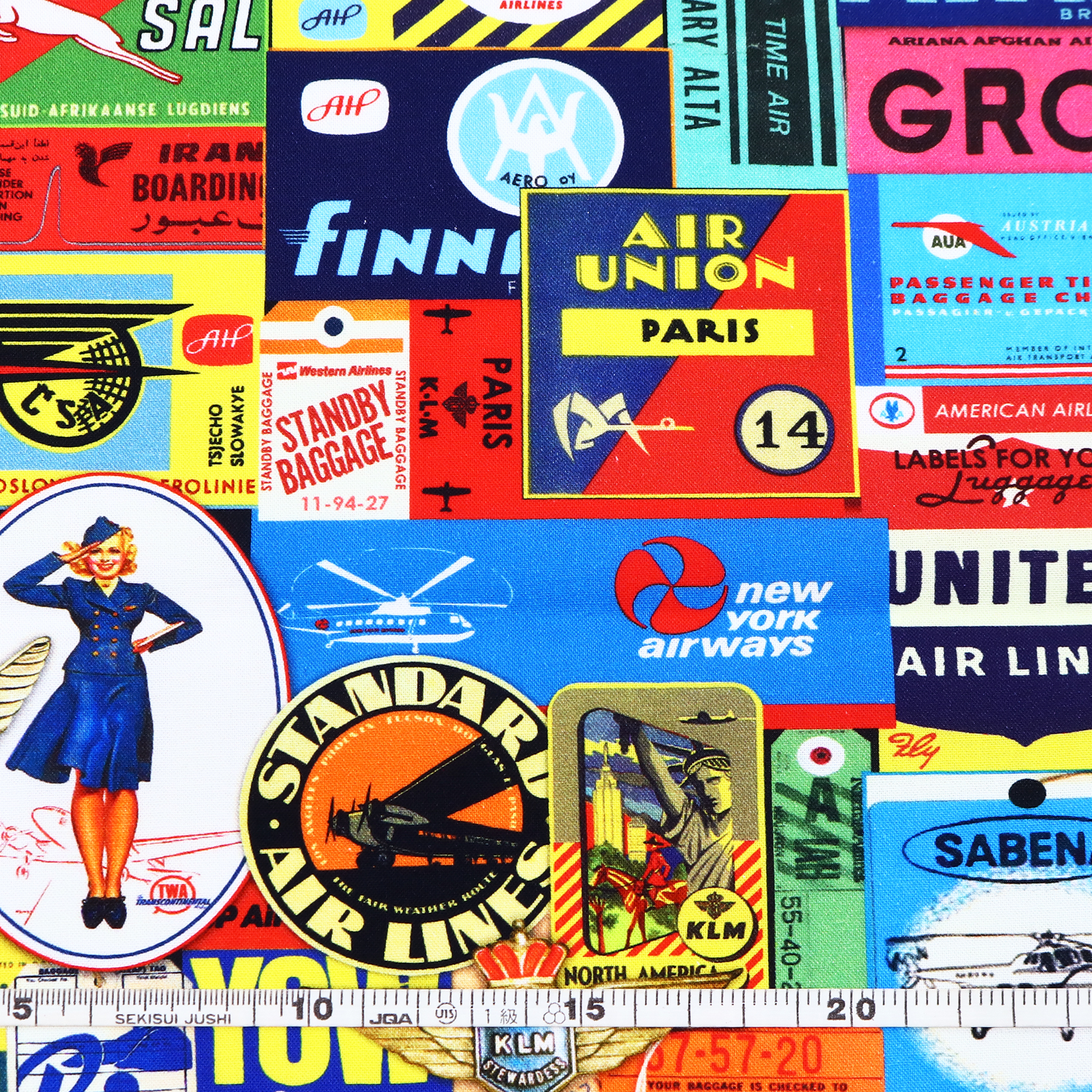 ROB19709-267 Retro aviation colorful baggage tag pattern ROBERTKAUFMAN USA print Width approx. 110cm 1m unit (m)