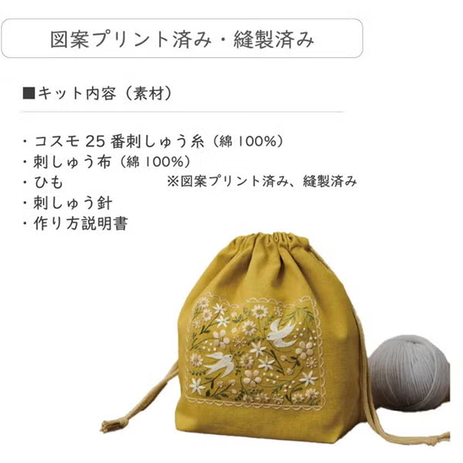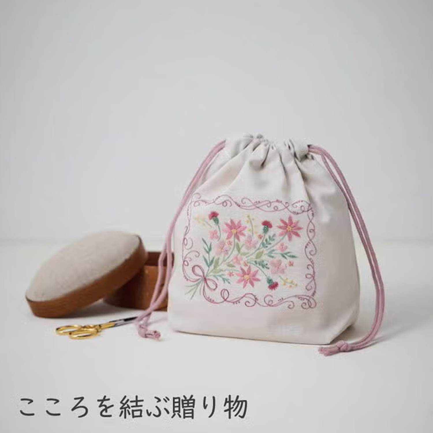CSK542505~6 COSMO Atelier de Nora Peaceful Embroidery Gusseted Drawstring Bag Kit Set (Set)