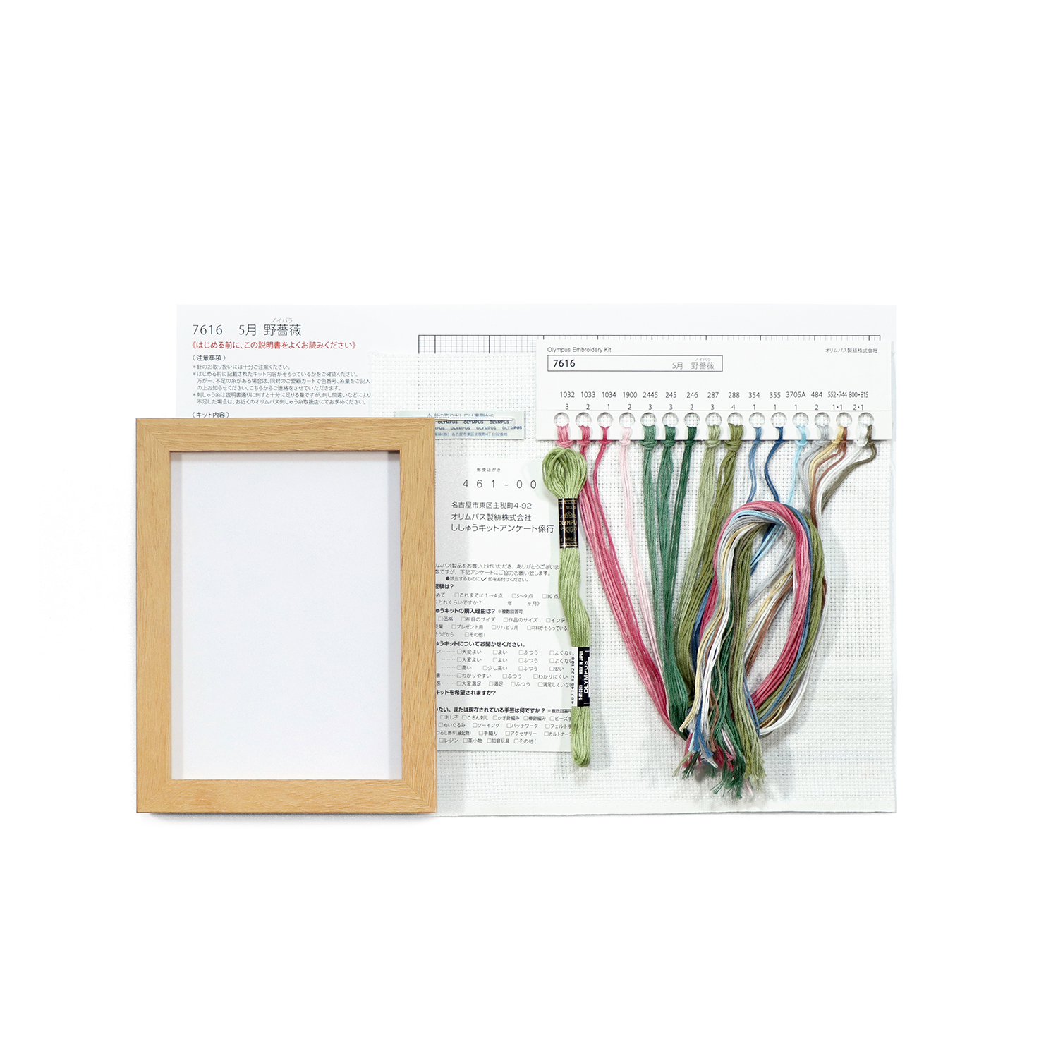 ■Materials: No. 25 embroidery thread, No. 8300 (Indian Cross) <32> off-white (100% cotton), cross stitch needle (steel), instruction manual with colored pattern (paper), frame (MDF)