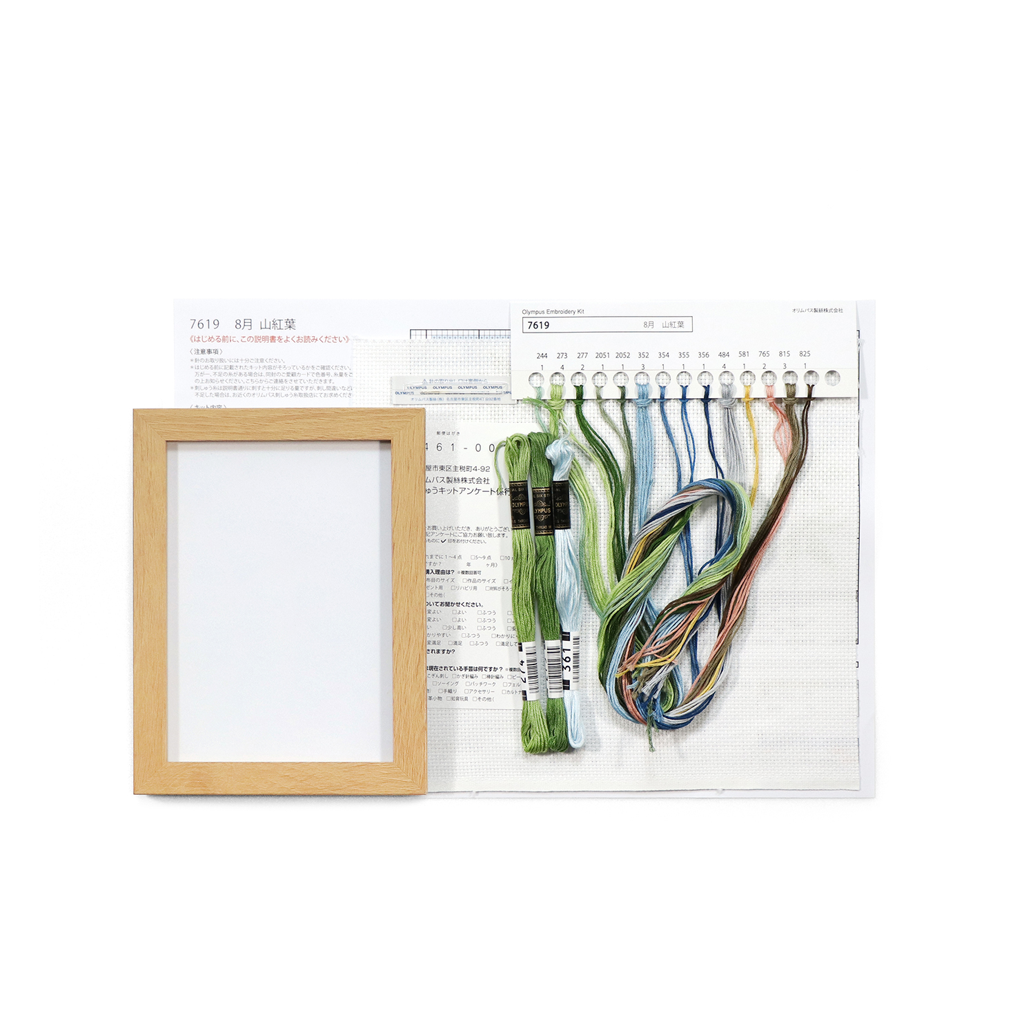 ■Materials: No. 25 embroidery thread, No. 8300 (Indian Cross) <32> off-white (100% cotton), cross stitch needle (steel), instruction manual with colored pattern (paper), frame (MDF)