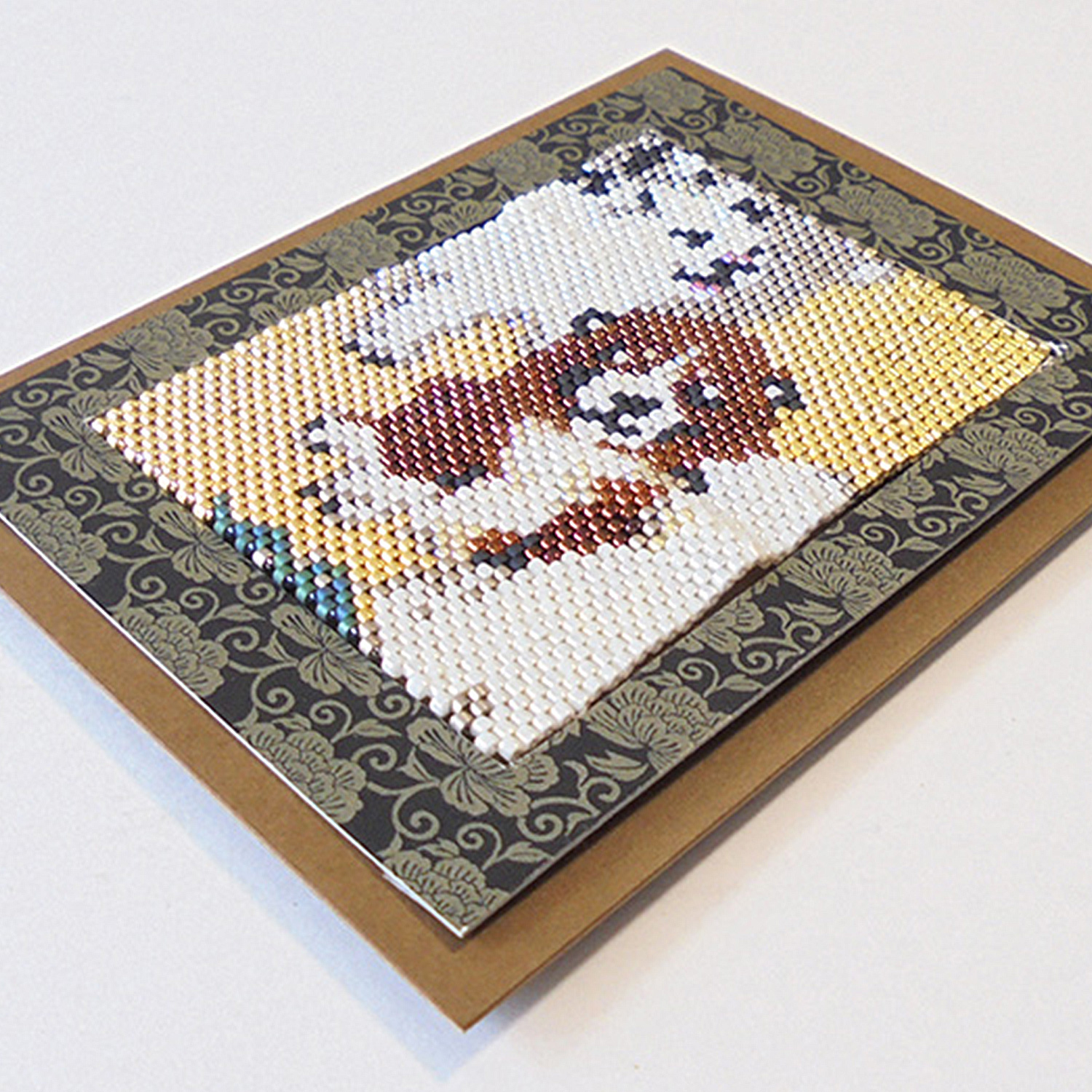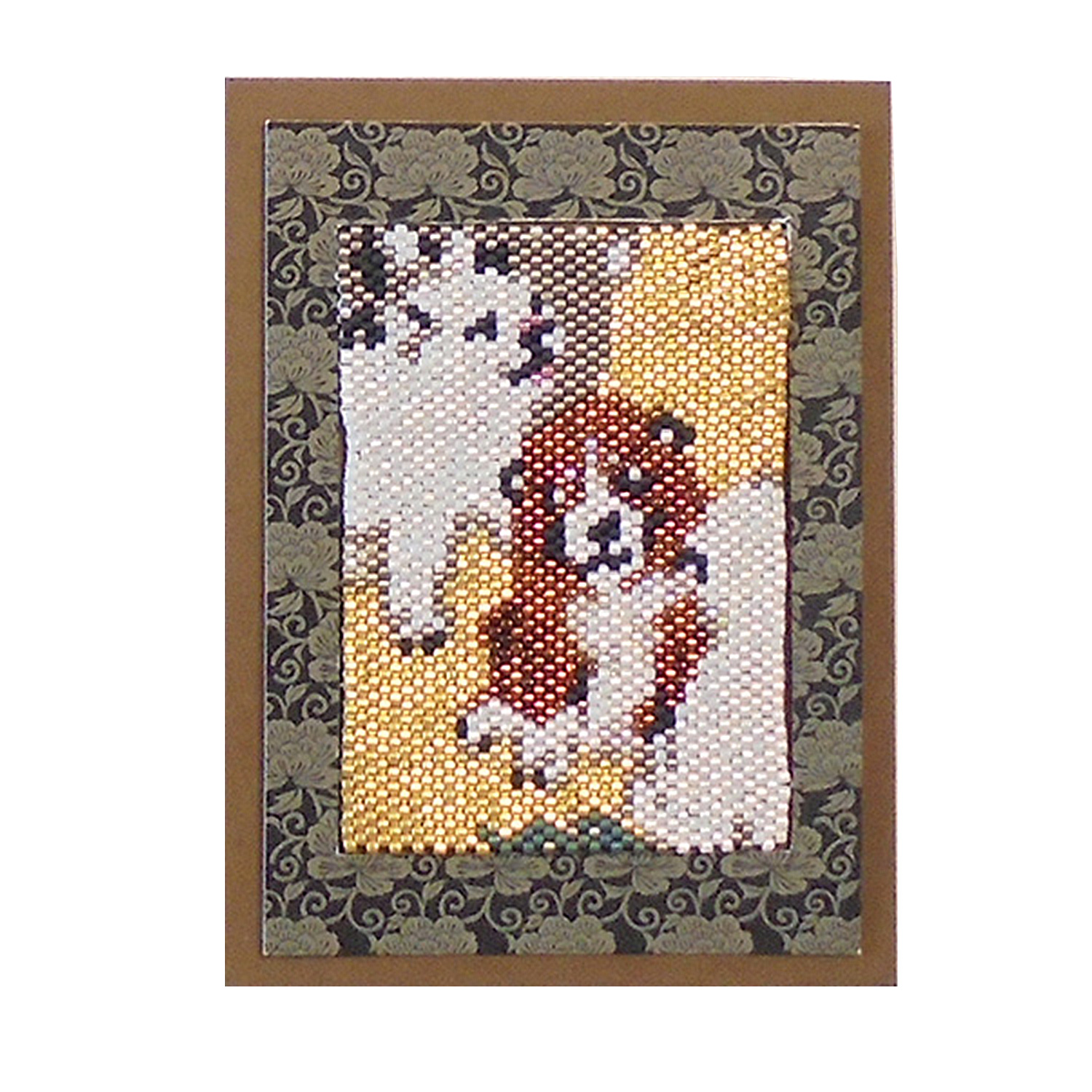 A bead stitch kit that expresses Japanese paintings and seasonal motifs with over 1000 beads.