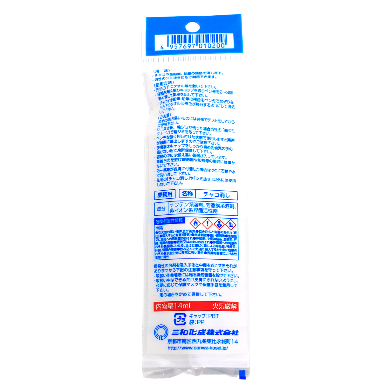 You can easily erase chaco ink or other ink that remains on your fabrics with this. You can also use it for oil stains. ■Contents/14ml