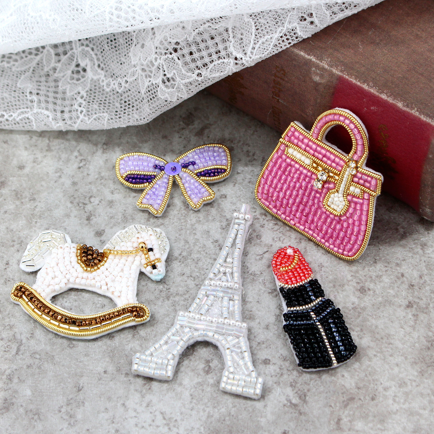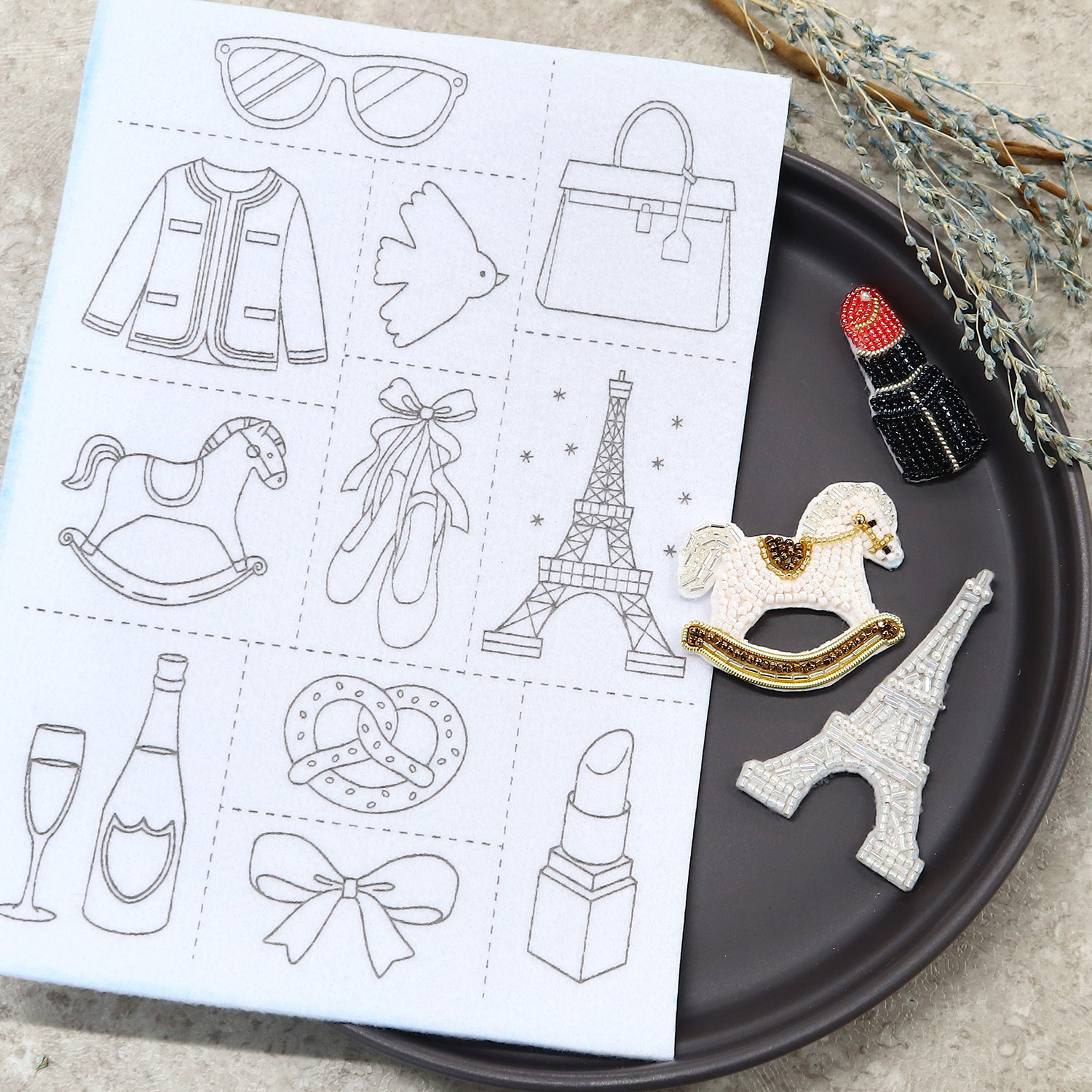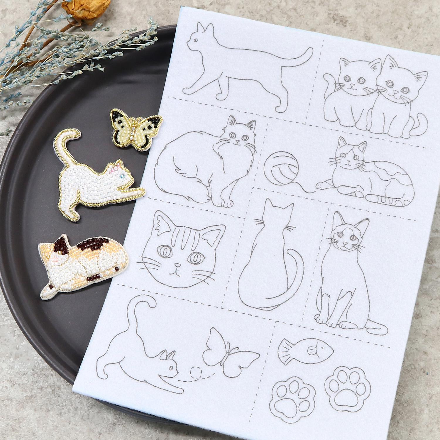 Simply stitch beads and thread along the design to easily complete a cute motif.