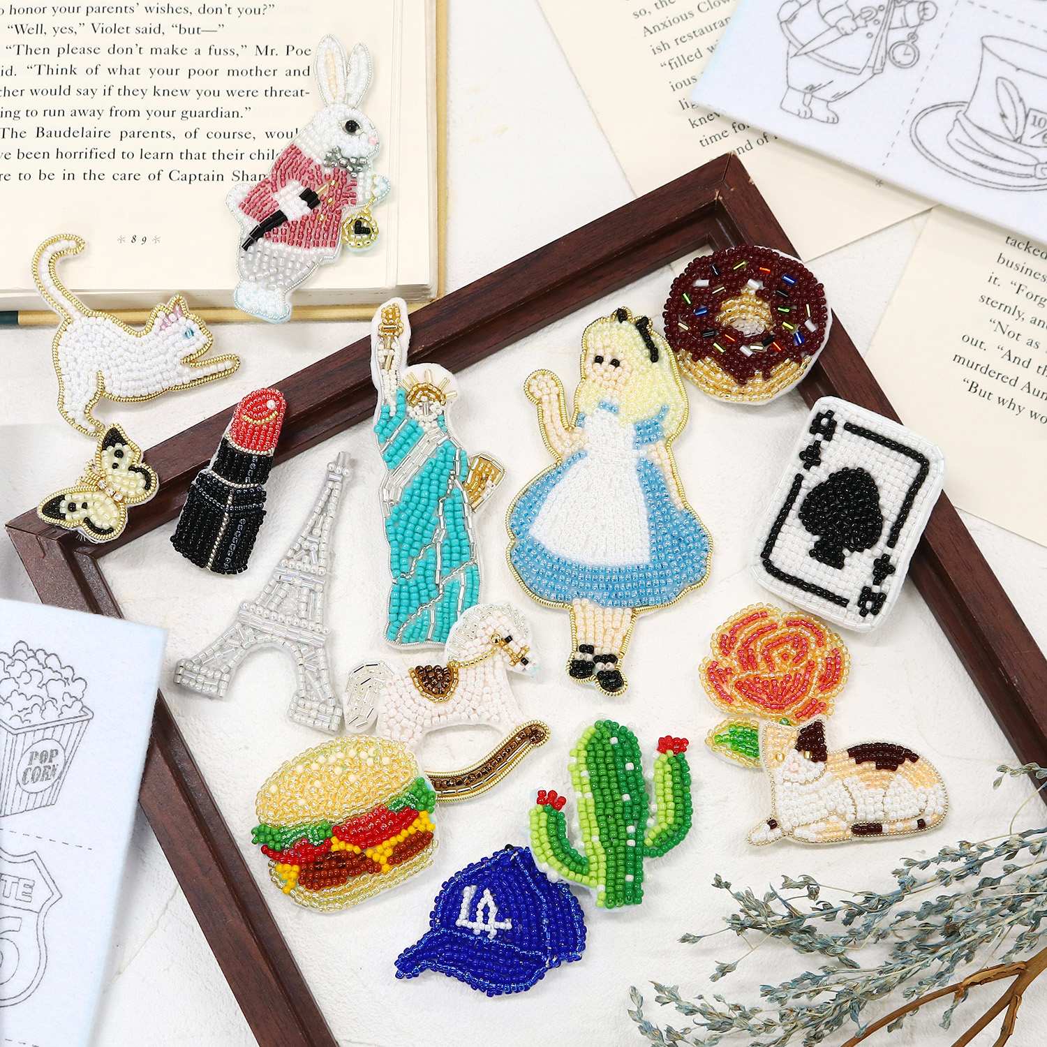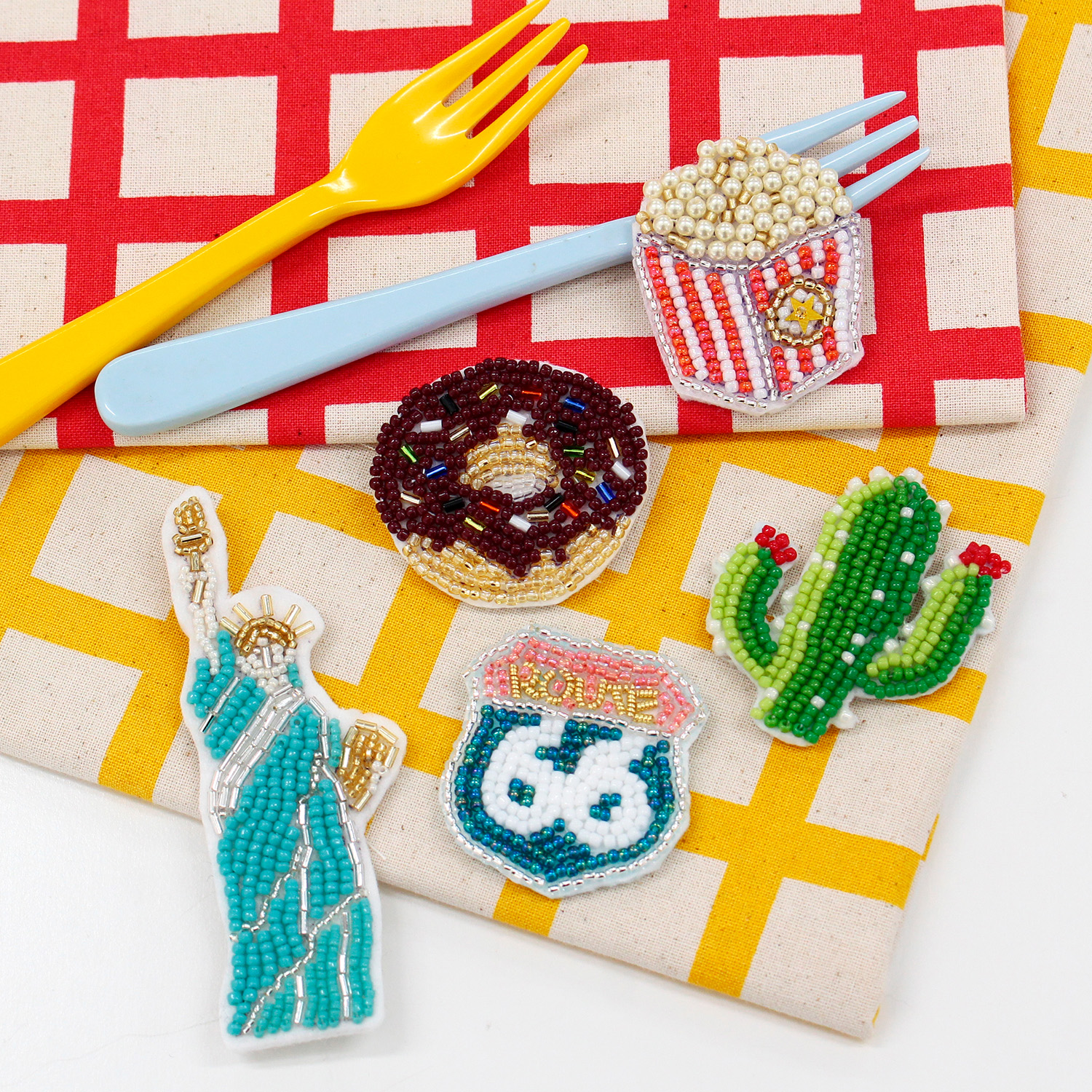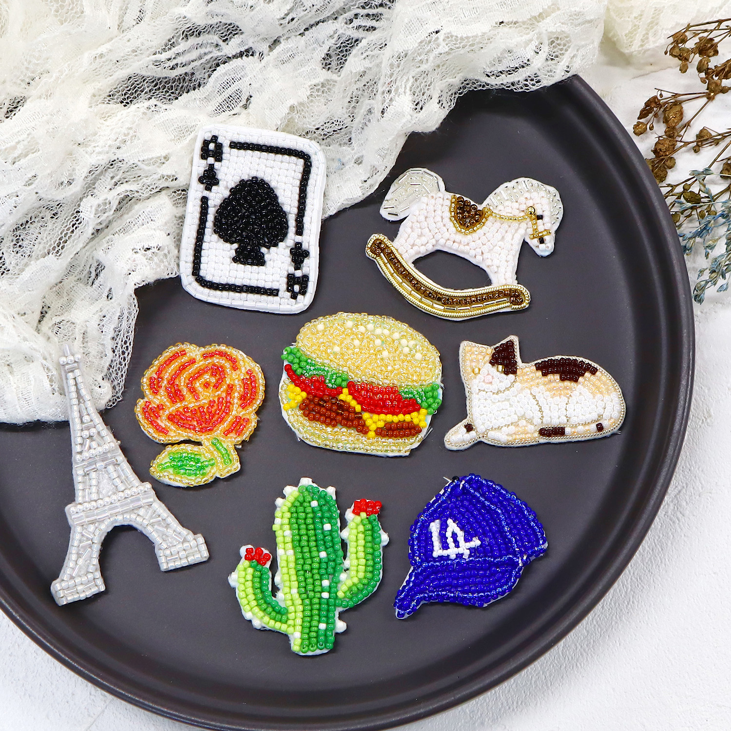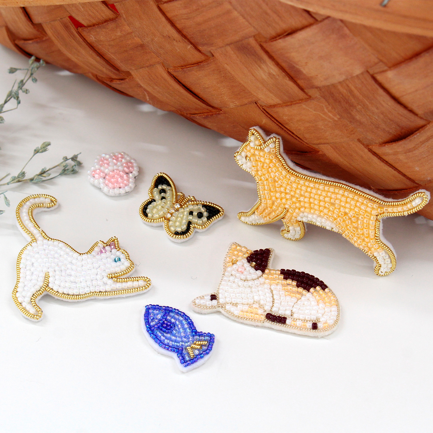 Simply stitch beads and thread along the design to easily complete a cute motif.