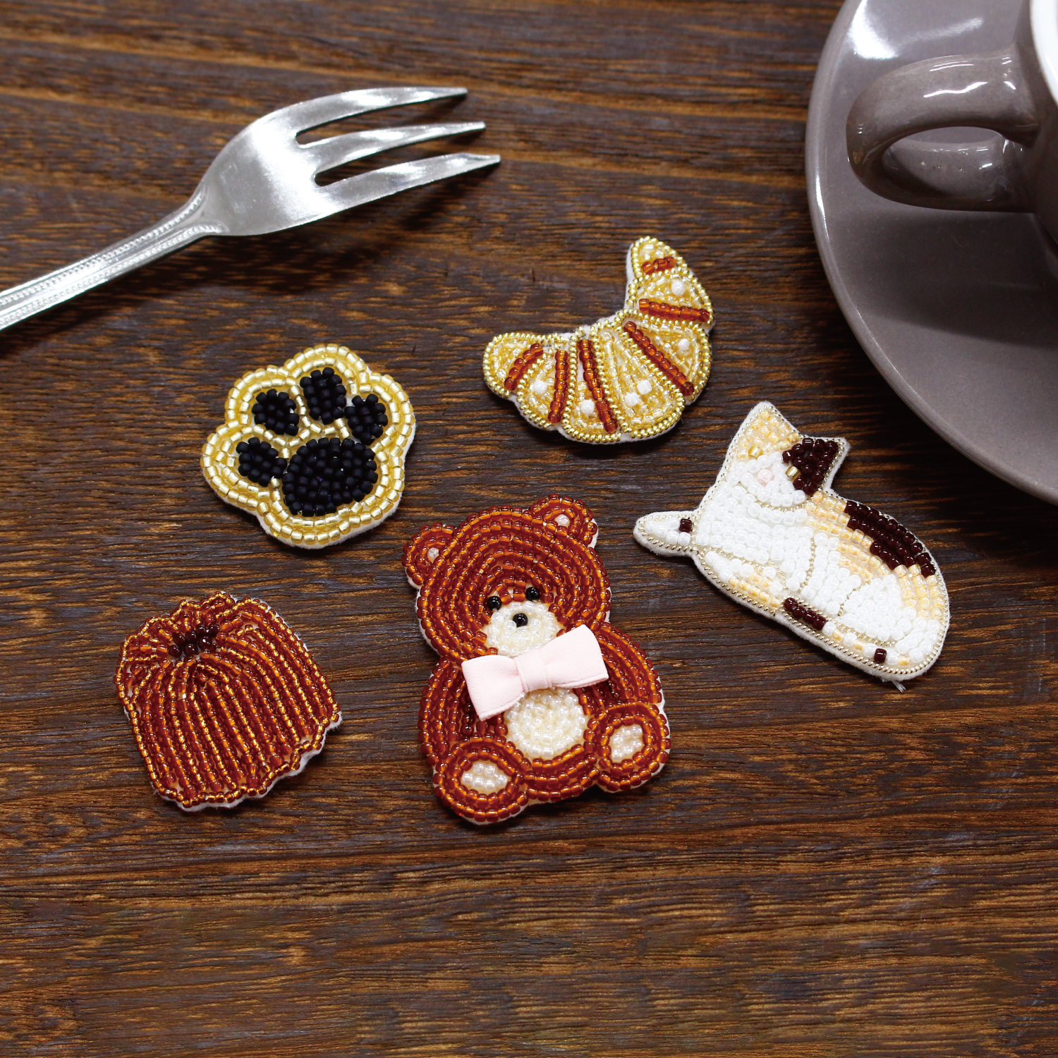 絵柄に沿ってビーズや糸を刺すだけで、かわいいモチーフが簡単に完成します。