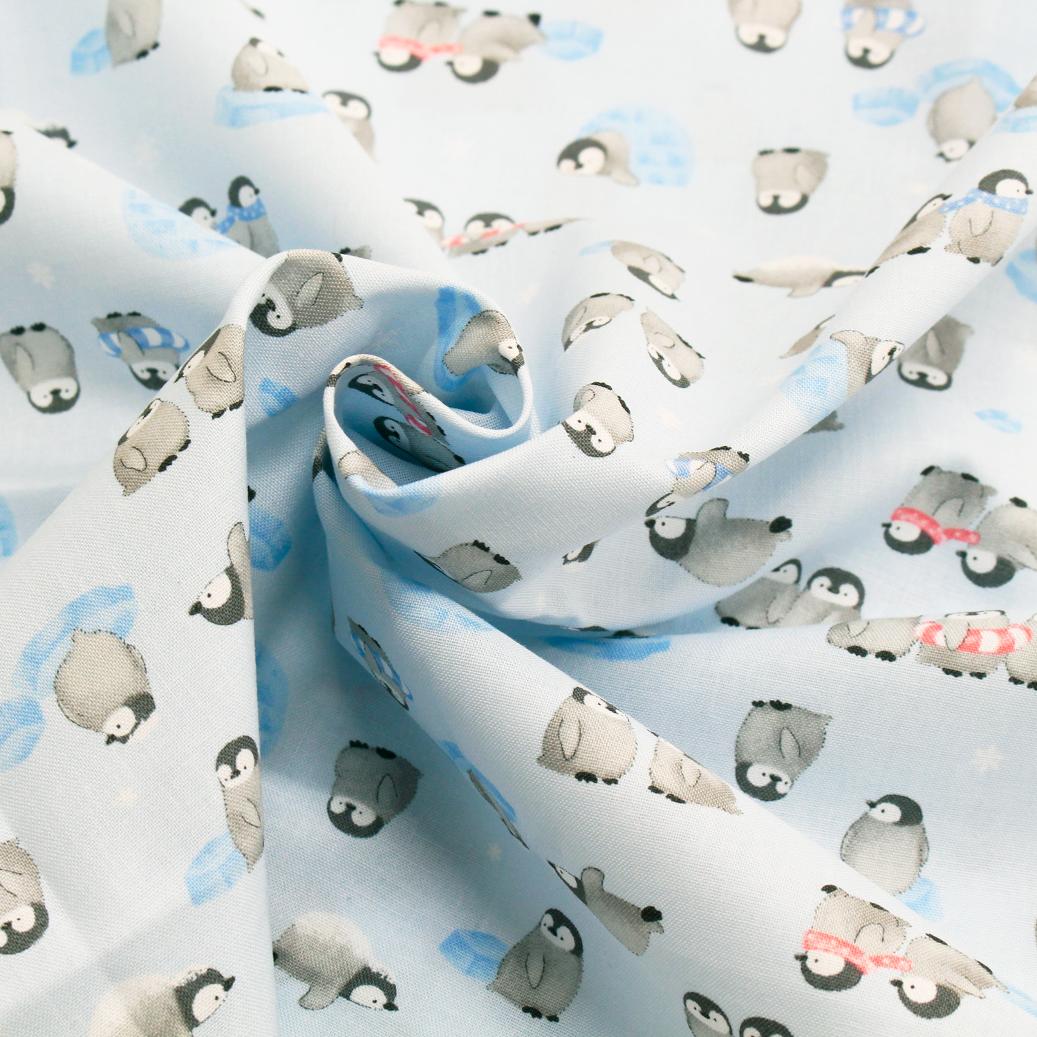 AP55202H-1 コットンプリントシーチング ふわふわアニマル ペンギン 1m単位 (m)