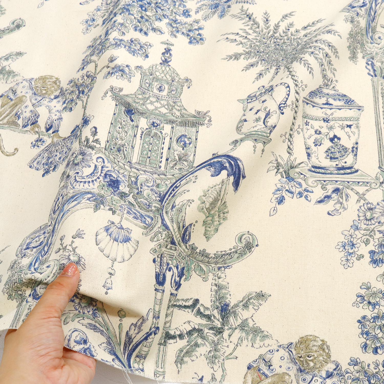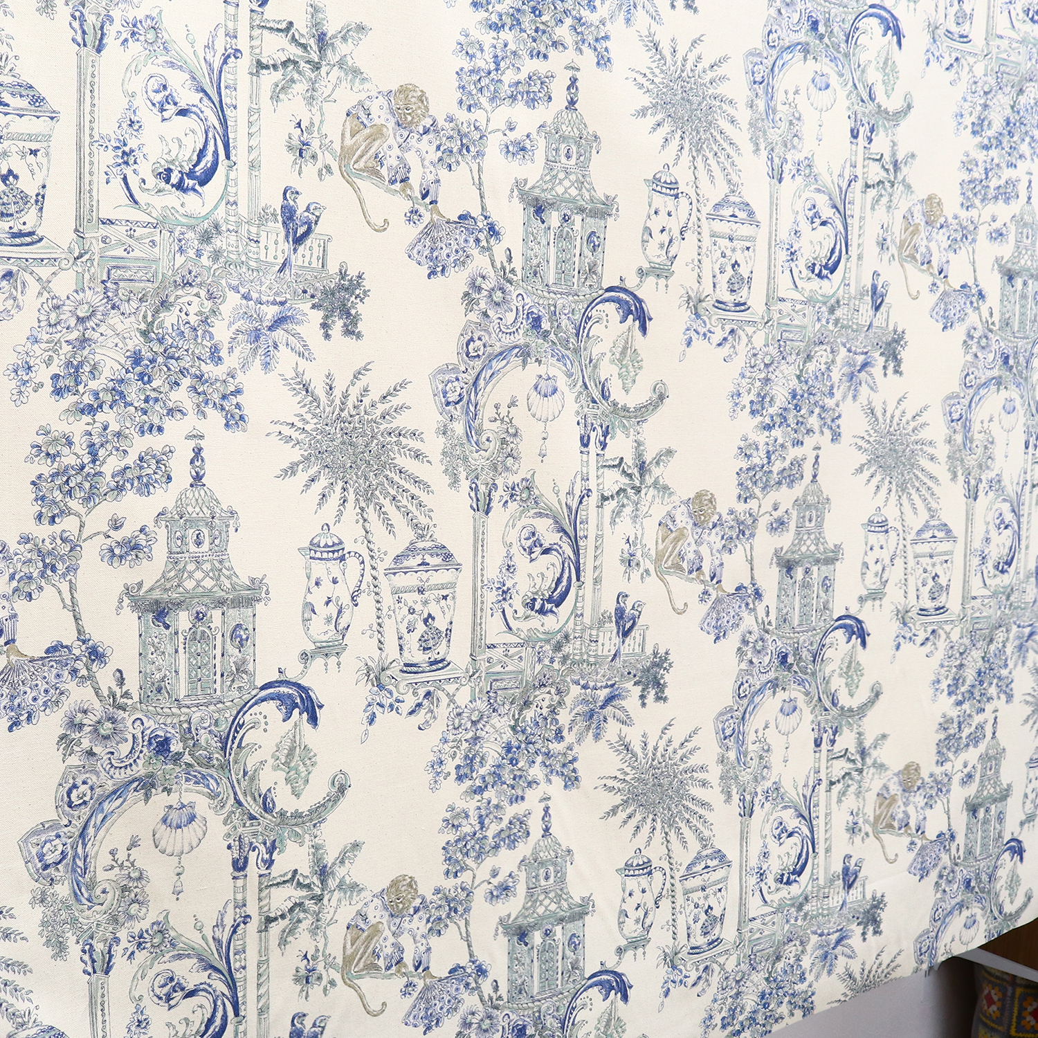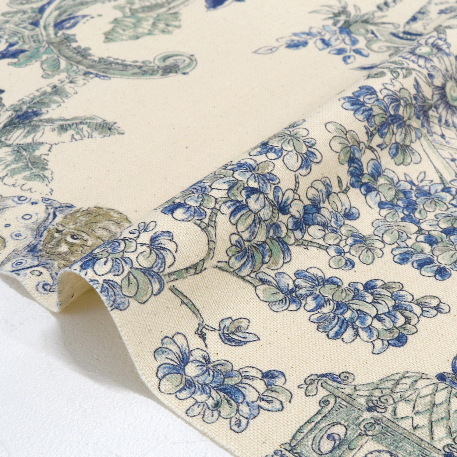 VIL-SIAM-30 オリエンタル・トワル 猿と鳥 スペイン輸入 綿麻風インクジェットオックス 生地 約巾140cm 1m単位 (m)