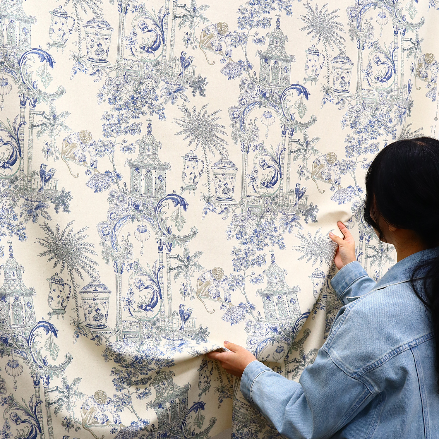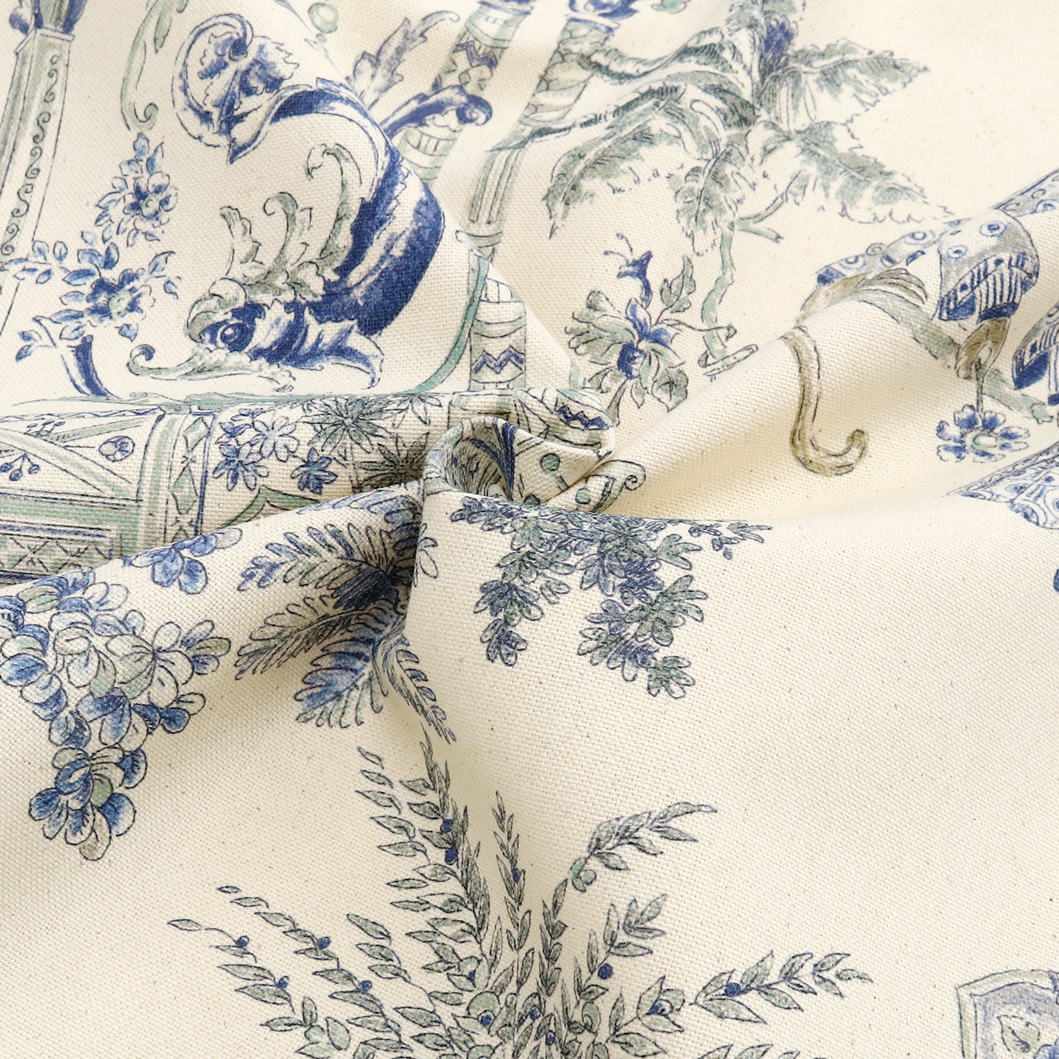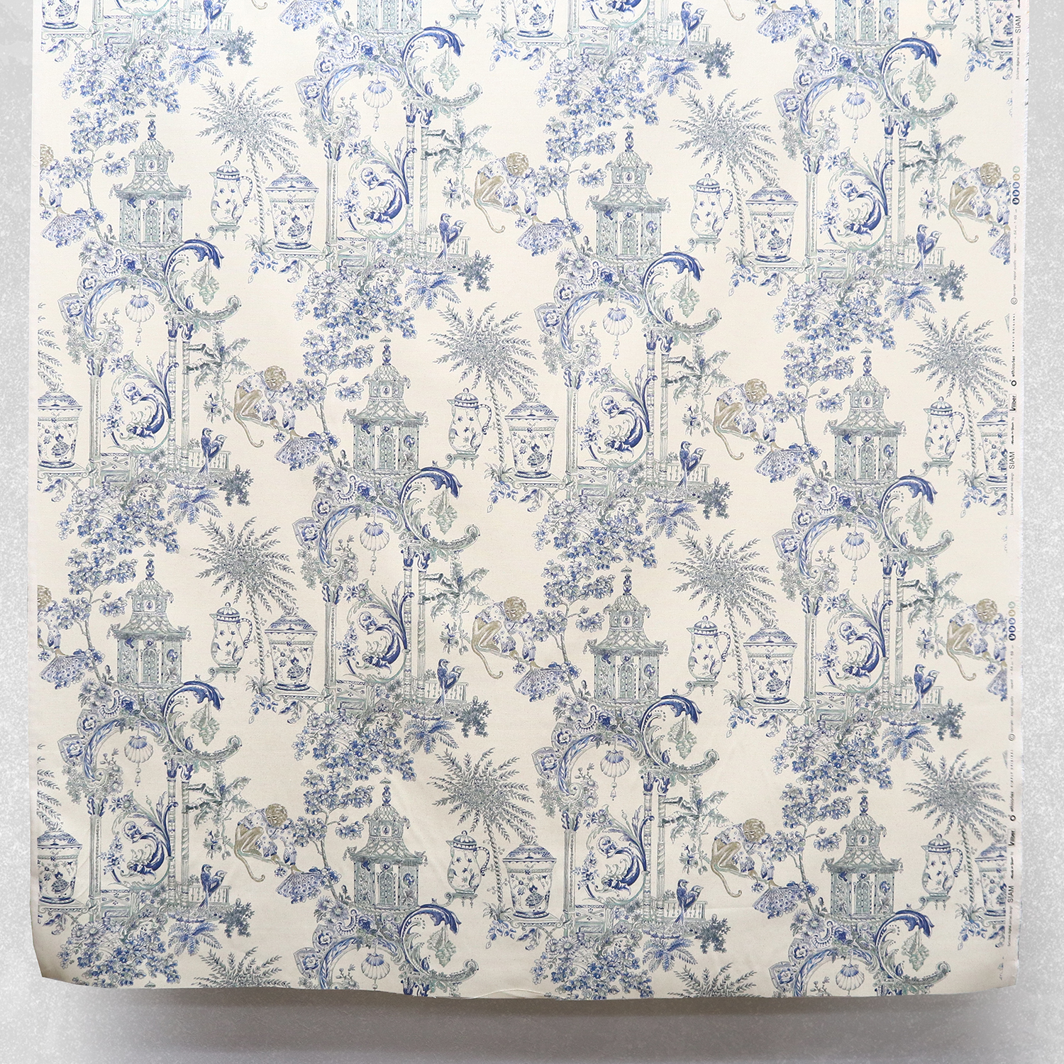 VIL-SIAM-30 オリエンタル・トワル 猿と鳥 スペイン輸入 綿麻風インクジェットオックス 生地 約巾140cm 1m単位 (m)