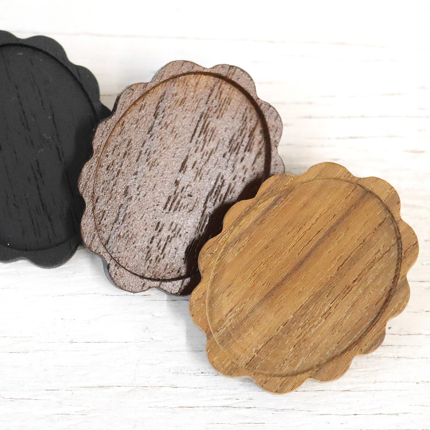A22-5 ウッドブローチ 丸型 小 φ40mm 銅板・ピン付き 同色5個入 (セット)