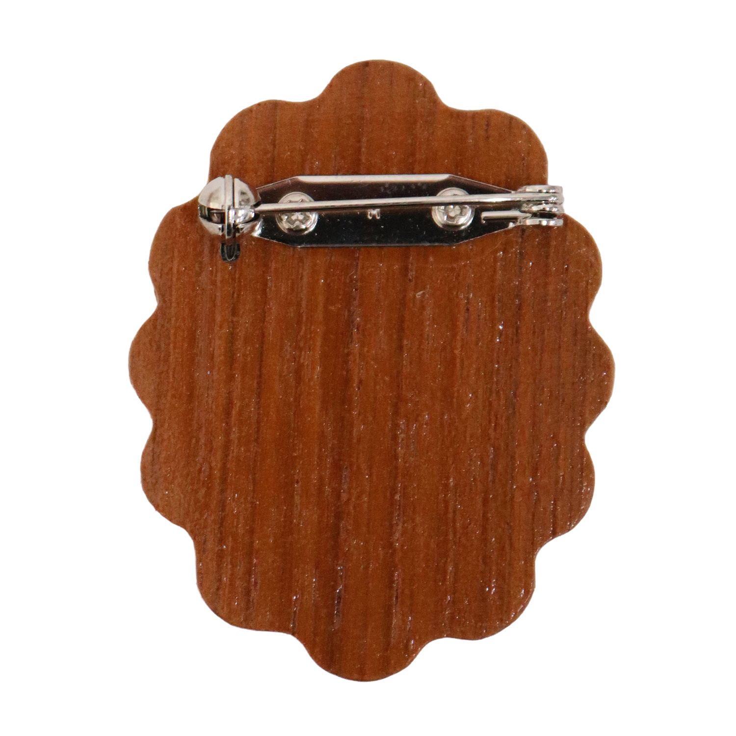 A22-5 ウッドブローチ だ円たて型 小 W35×H40mm 銅板・ピン付き 同色5個入 (セット)