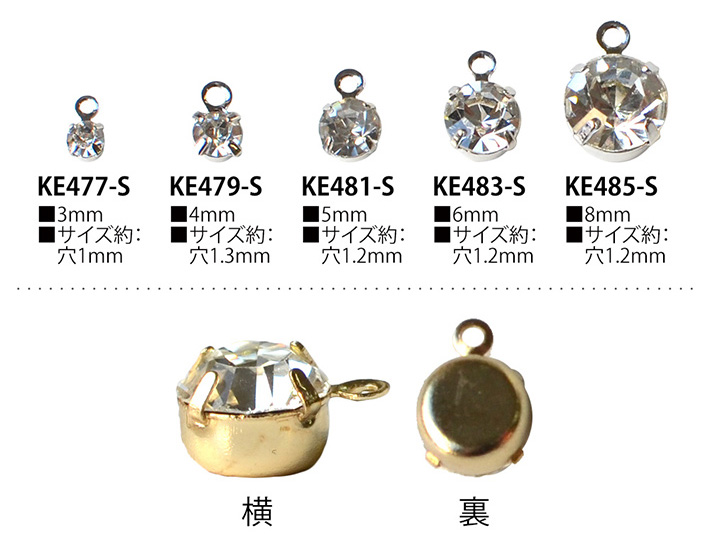 KE477~485 カン付きストーン 3~8mm シルバー 10個入 (袋)