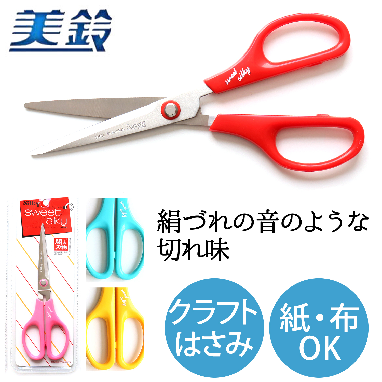 見た目は普通のハサミですが、軽く、ある程度先端が尖っていて、使い初めから滑らかな切れ味です。 くつろぎのあるオーソドックスなスタイルと繊細なシルキータッチは、まさに絹づれの音のような切れ味を作り出します。紙や布を切るときに最適です。
