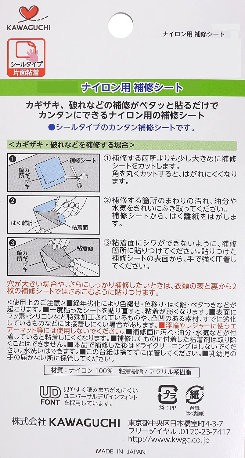 【無くなり次第廃番】TK93410 KAWAGUCHI ナイロン用 補修シート シールタイプ 幅7×長さ30cm 白 (枚)
