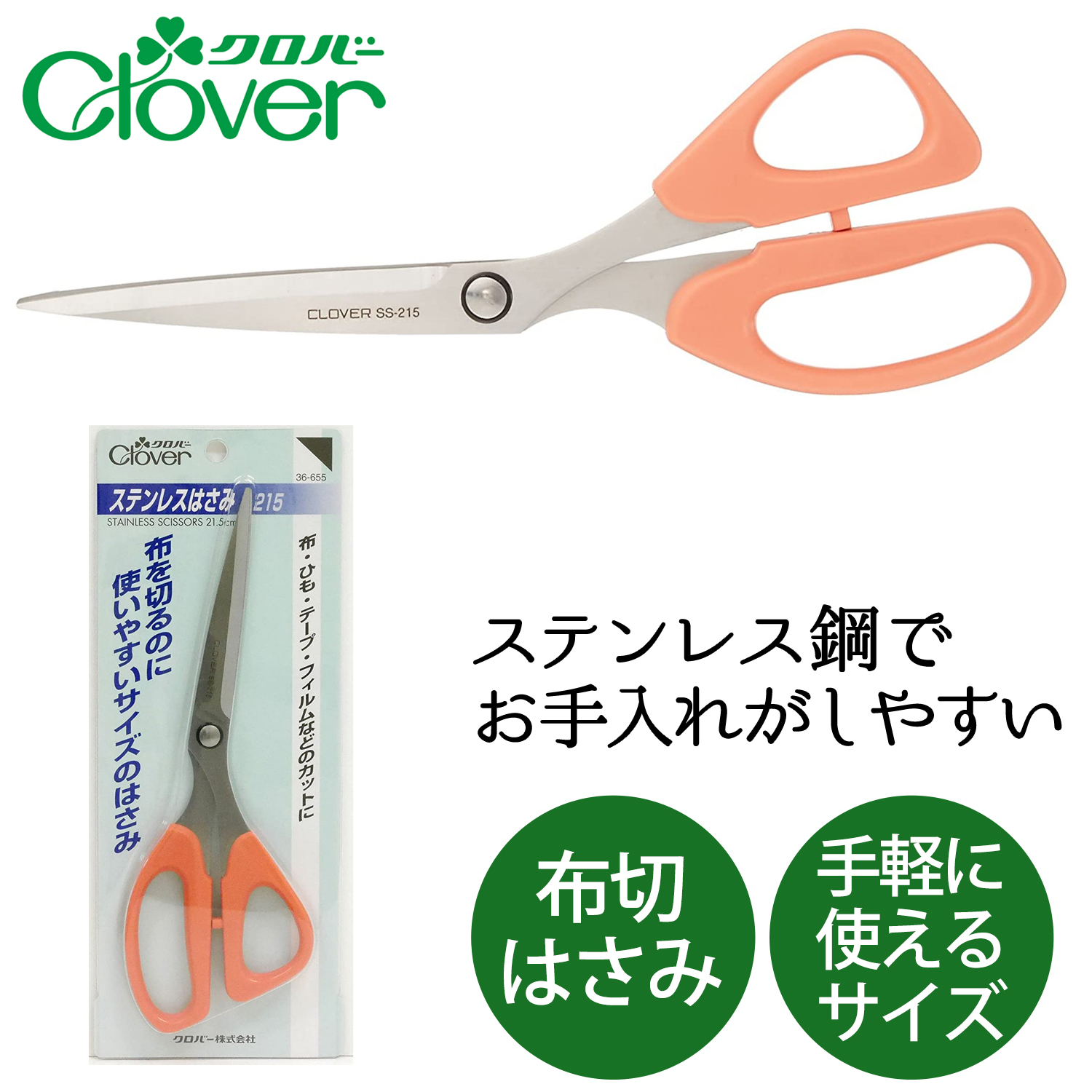 CL36-655 Clover ステンレスはさみ 215 全長21.5cm (個)