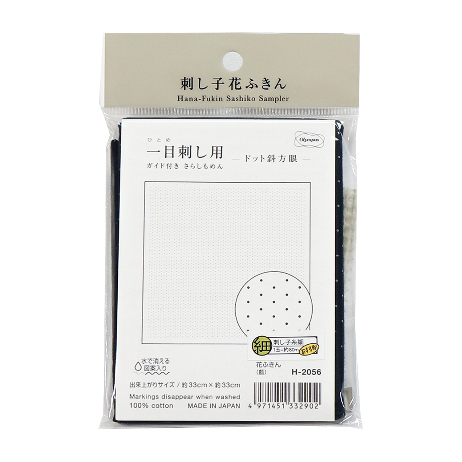 【お取り寄せ・返品不可】OHF 花ふきん 一目刺し用ガイド付き さらしもめん ドット斜方眼 3枚入 (袋)