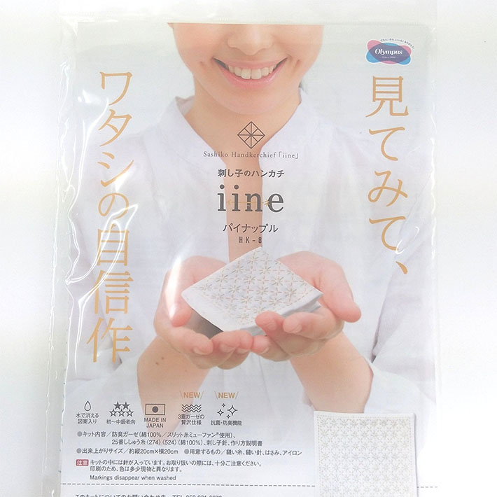 【お取り寄せ・返品不可】OLY-HK8 刺し子ハンカチ iine (イーネ) パイナップル 1組 (組)