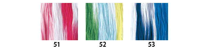 ステッチがはっきりと表現できる少し太めの刺し子糸。糸の色が途中で変わる段染め糸は個性的な作品づくりにおすすめの糸です。