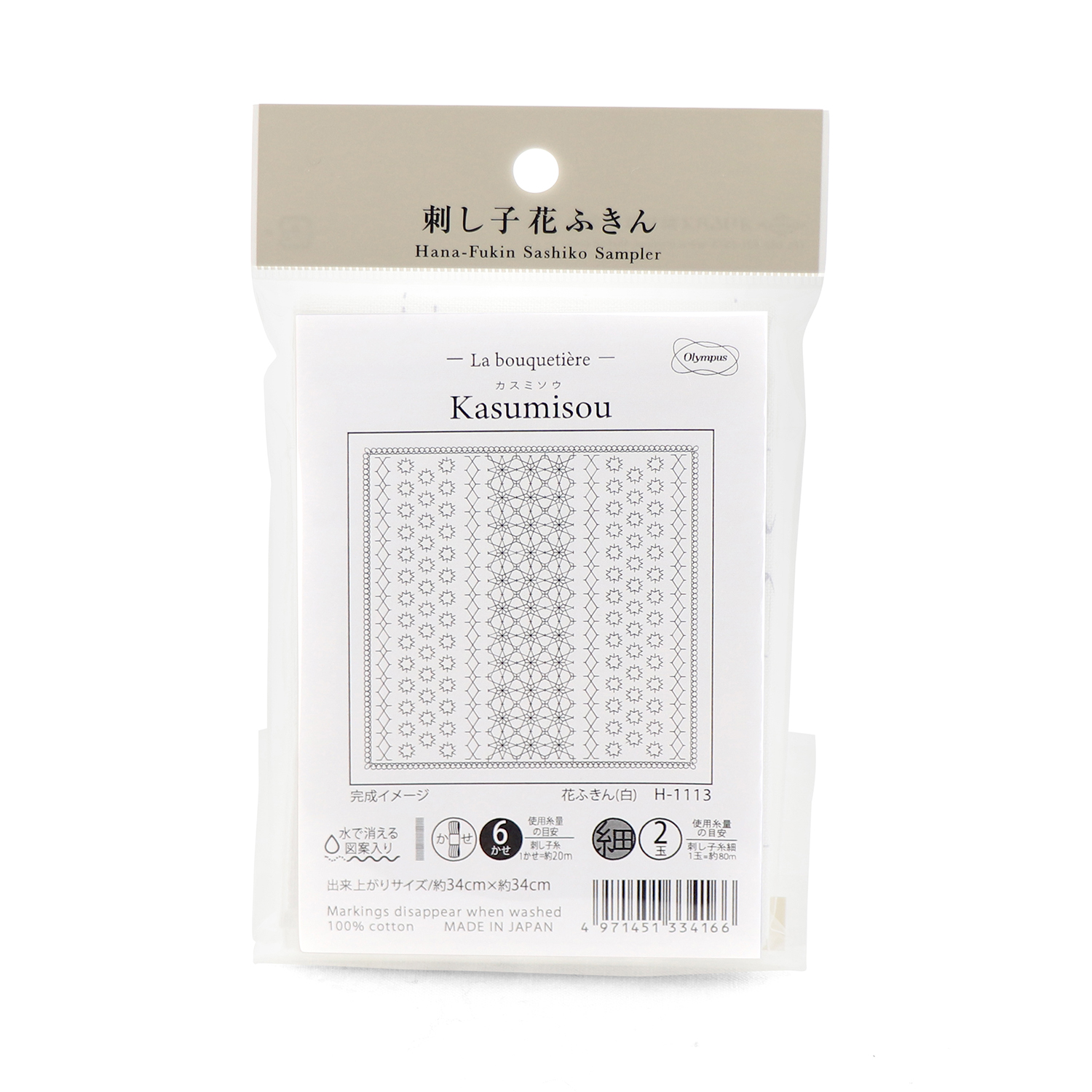 【お取り寄せ・返品不可】OHF-H1113 刺し子 花ふきん Kasumisou【白】 3枚入り (袋)