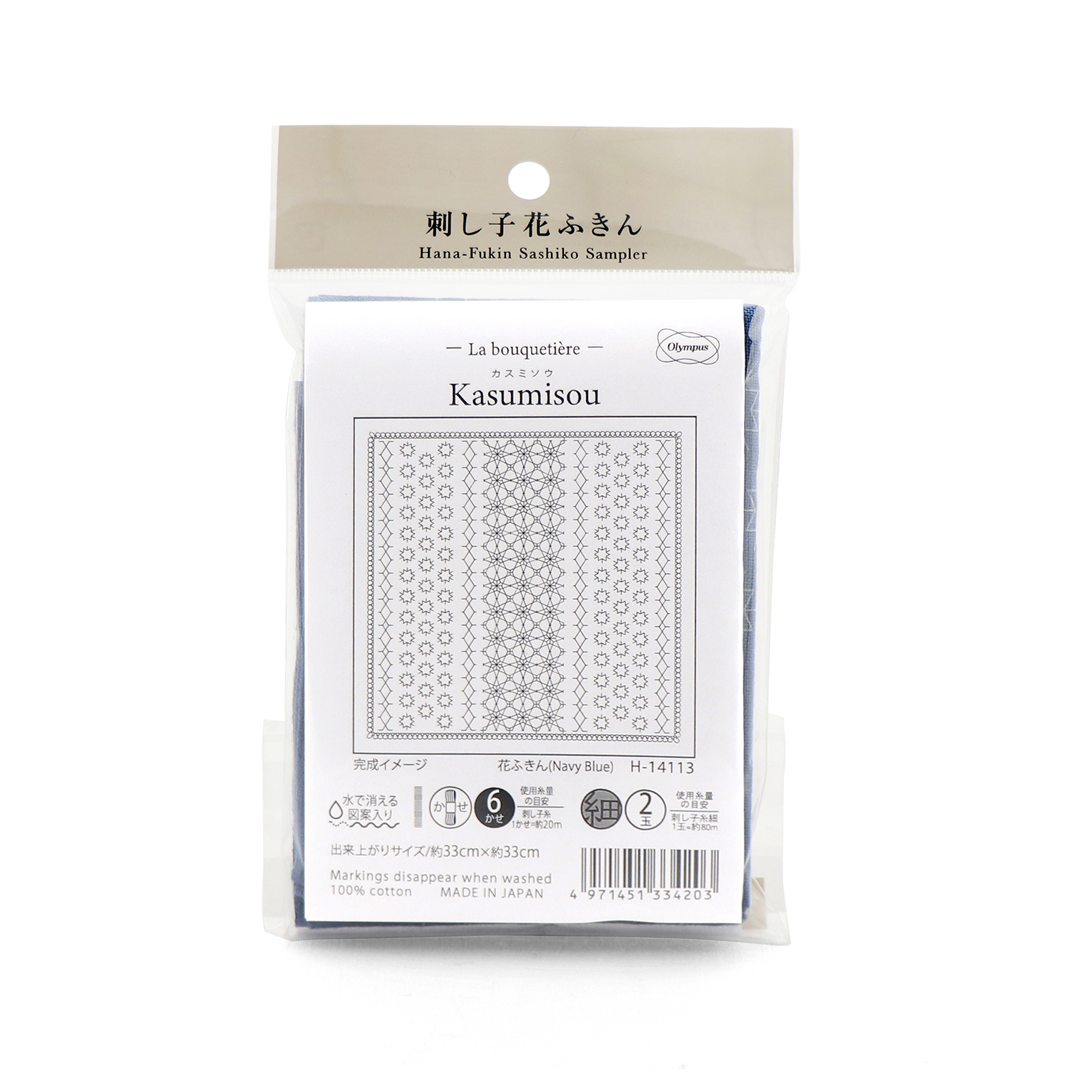 【お取り寄せ・返品不可】OHF-H14113 刺し子 花ふきん Kasumisou【藍】 3枚入り (袋)