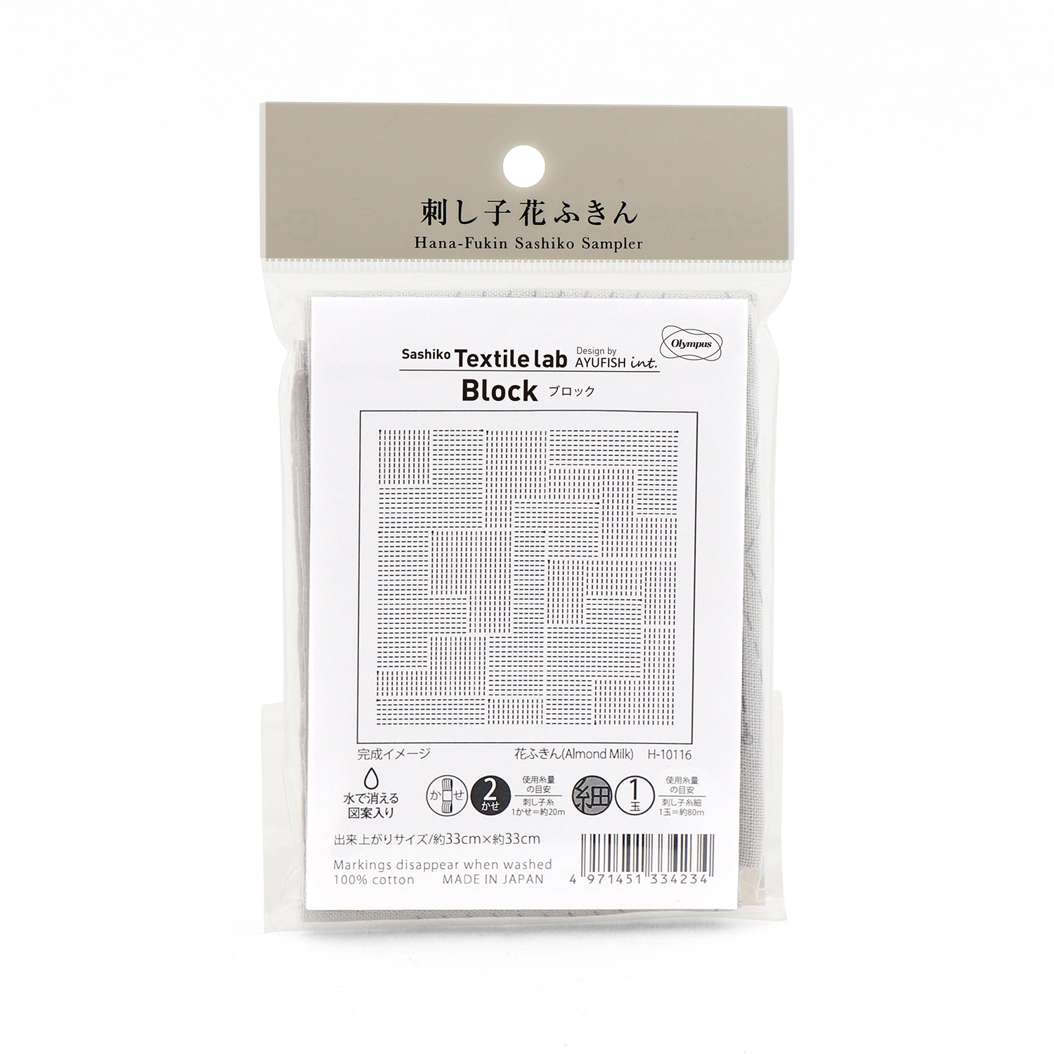 【お取り寄せ・返品不可】OHF-H10116 刺し子 花ふきん Taxtile lab Block【Almond Milk】 3枚入り (袋)