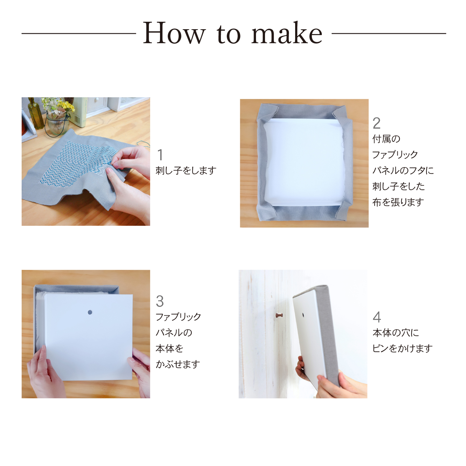 刺し子糸、刺し子もめん(Taupe)、ファブリックパネル、刺し子針、作り方説明書