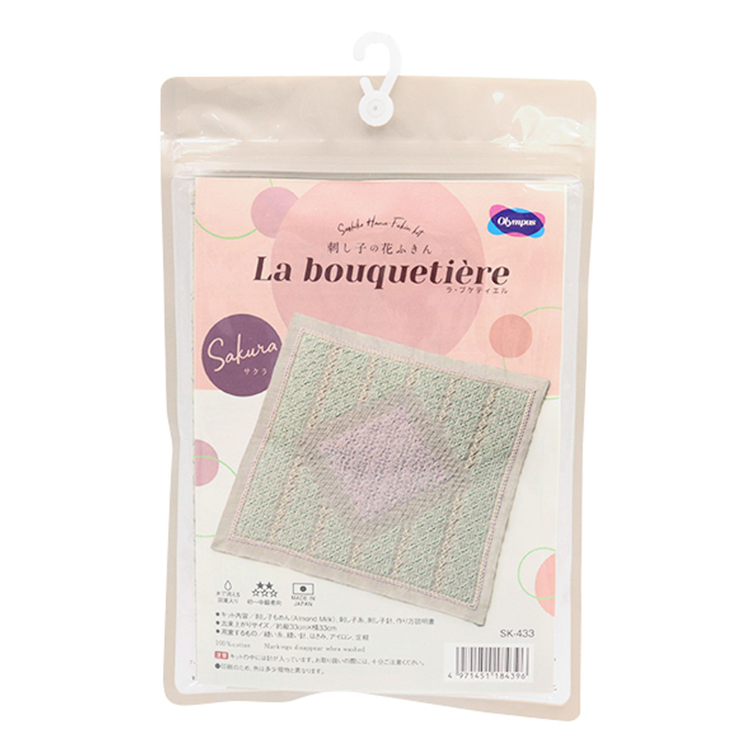 【お取り寄せ・返品不可】OLY-SK433 刺し子キット 刺し子の花ふきん「La bouquetiere」 Sakura サクラ (袋)
