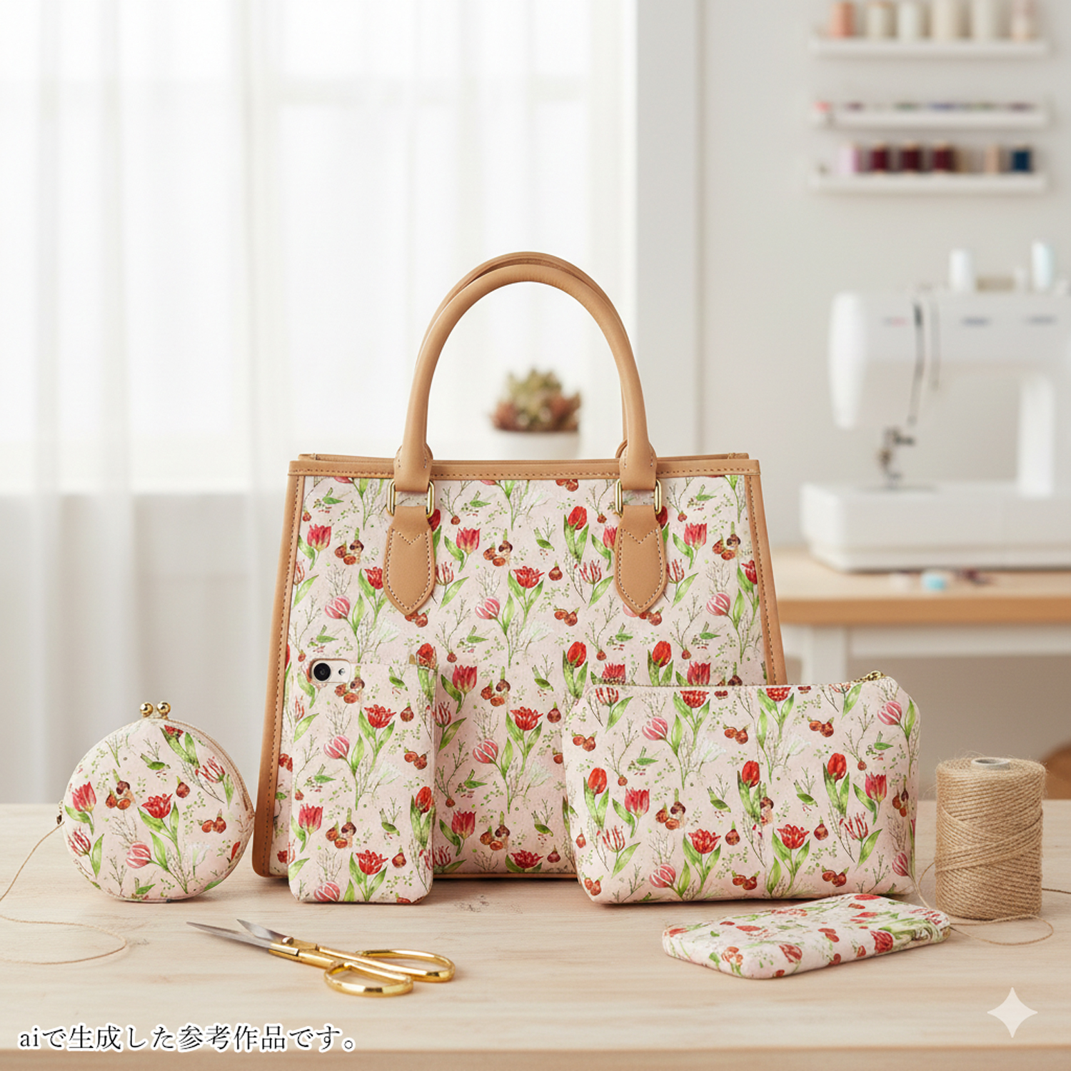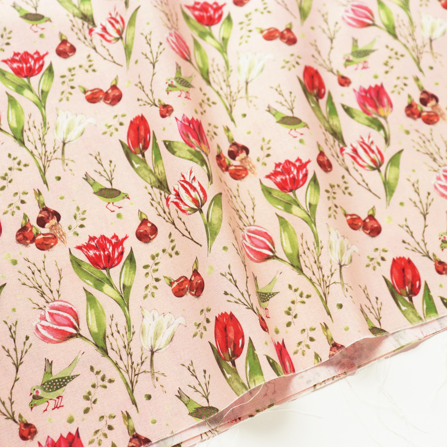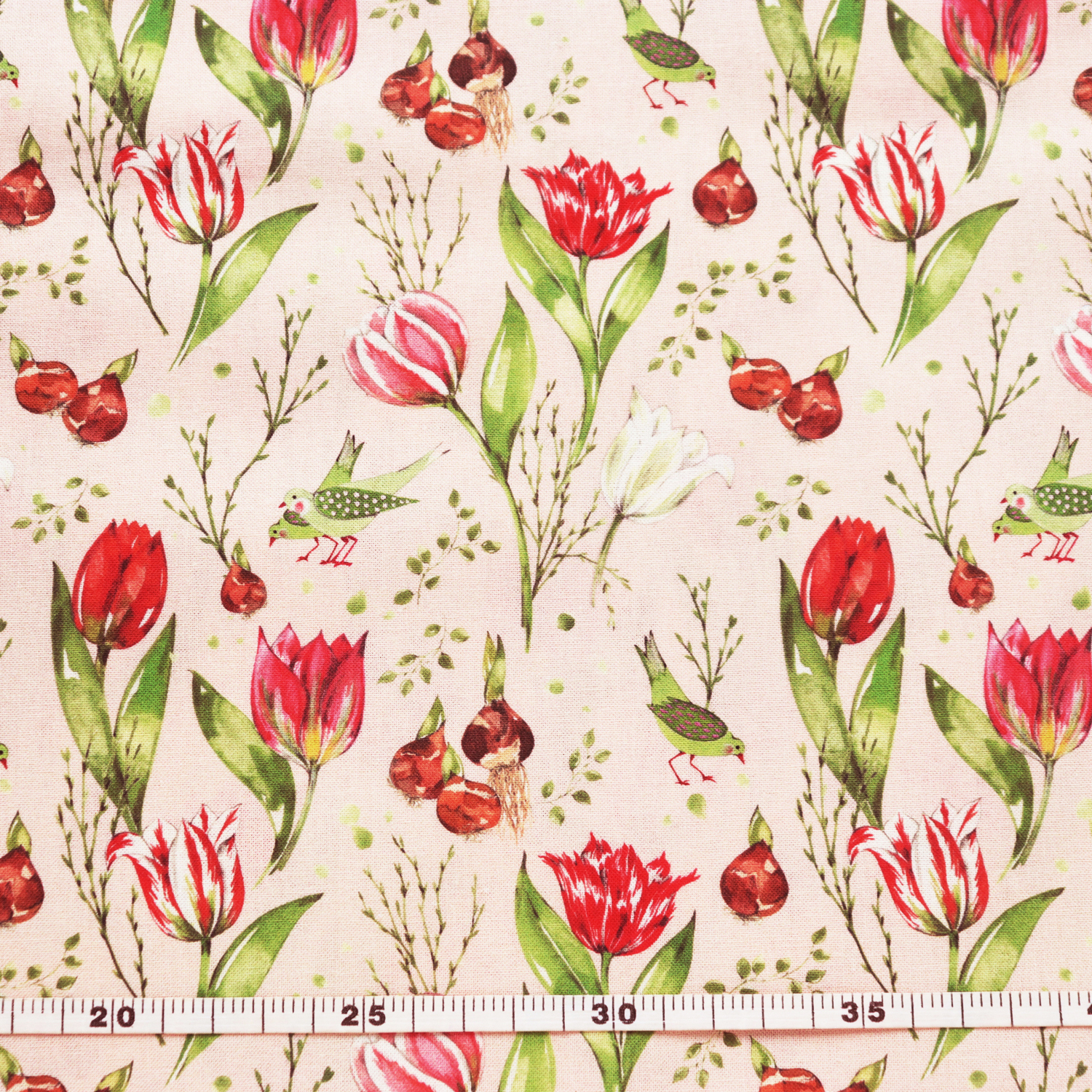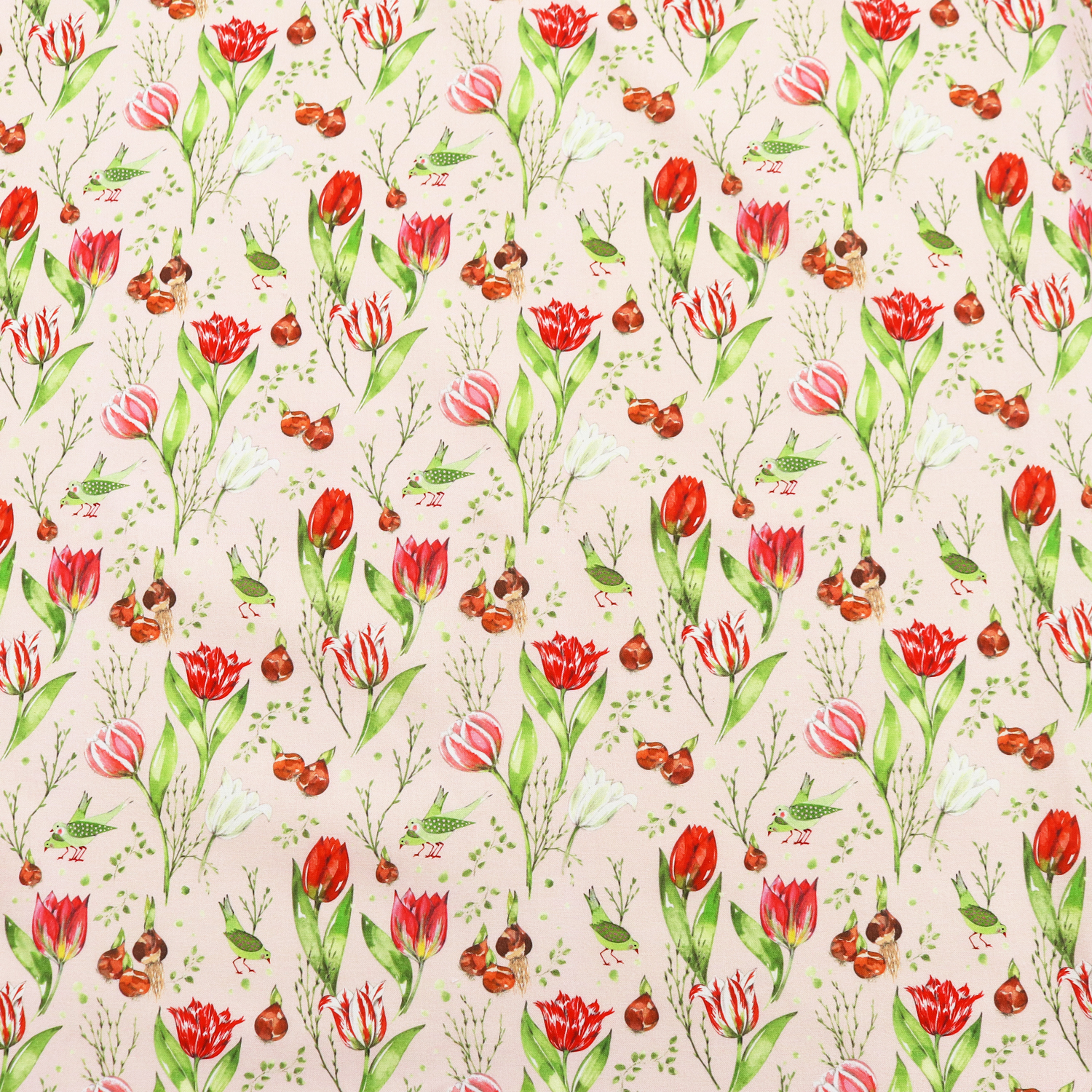 ■ACU3523-881R チューリップ acufactum プリント生地 約150cm幅 原反約10m巻 (巻)