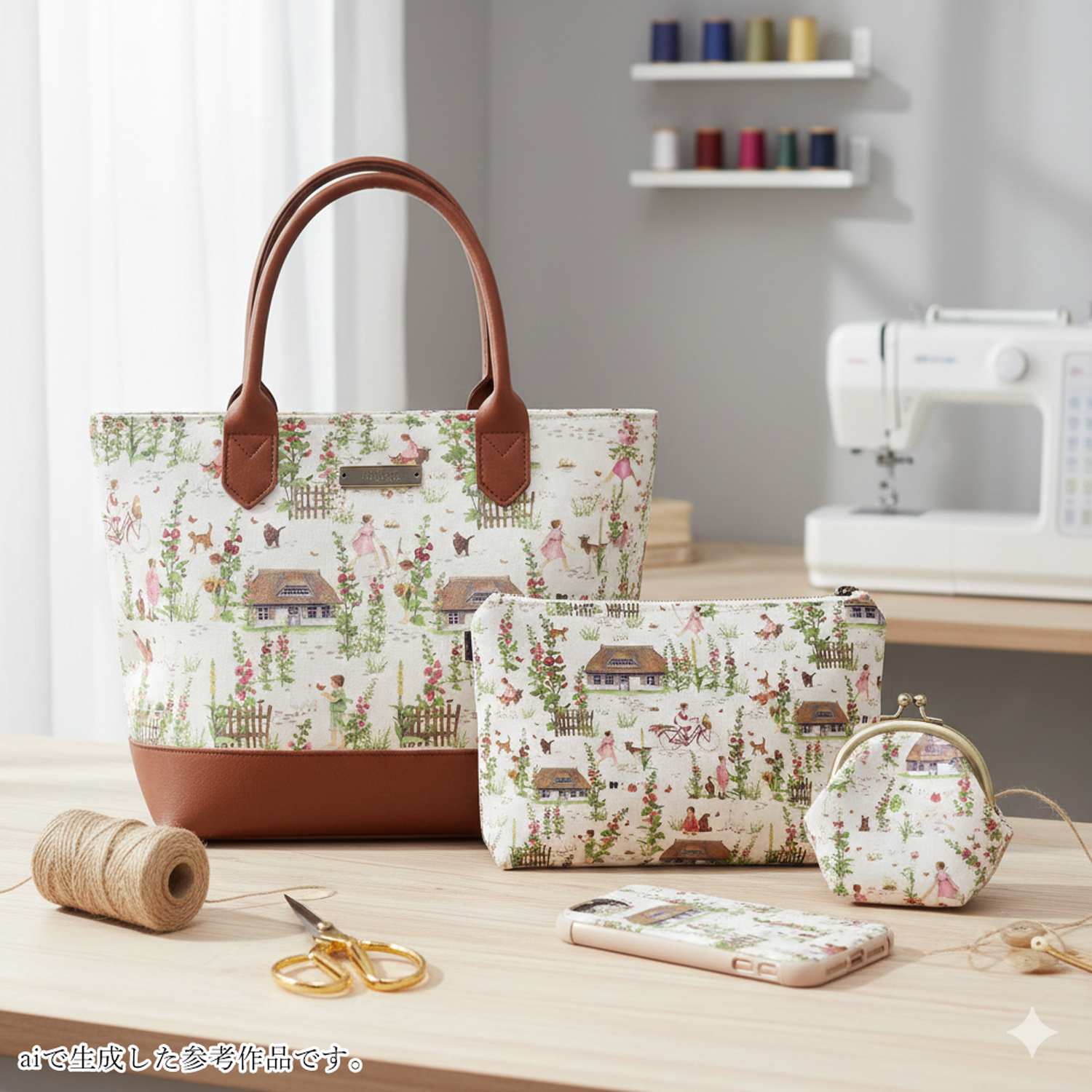 ■ACU3523-804R 夏の村 acufactum プリント生地 約150cm幅 原反約10m巻 (巻)