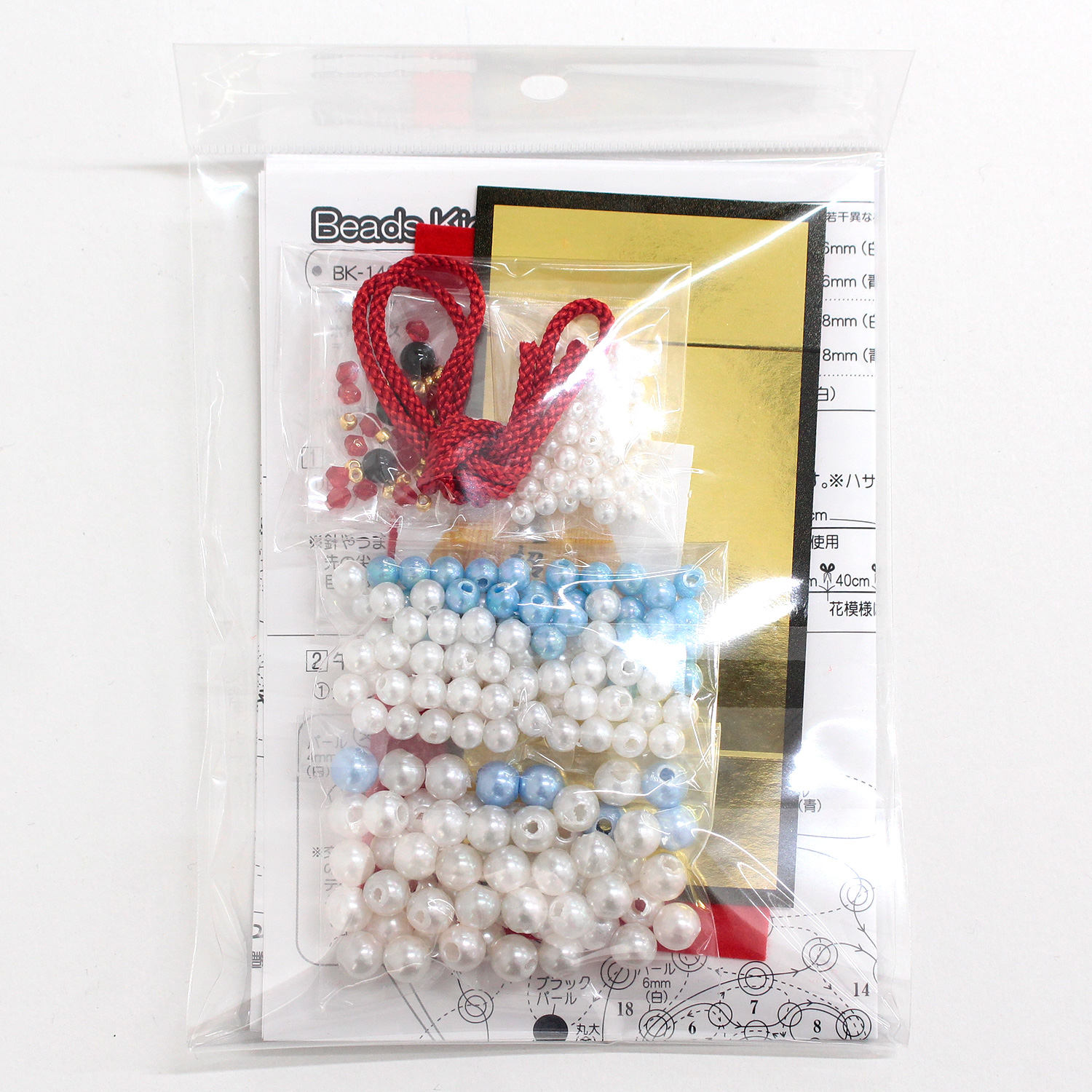 ■キット内容/パール・アクリルビーズ・丸大ビーズ・ひも・テグス・金屏風・赤もうせん・開運招福台紙・作り図
