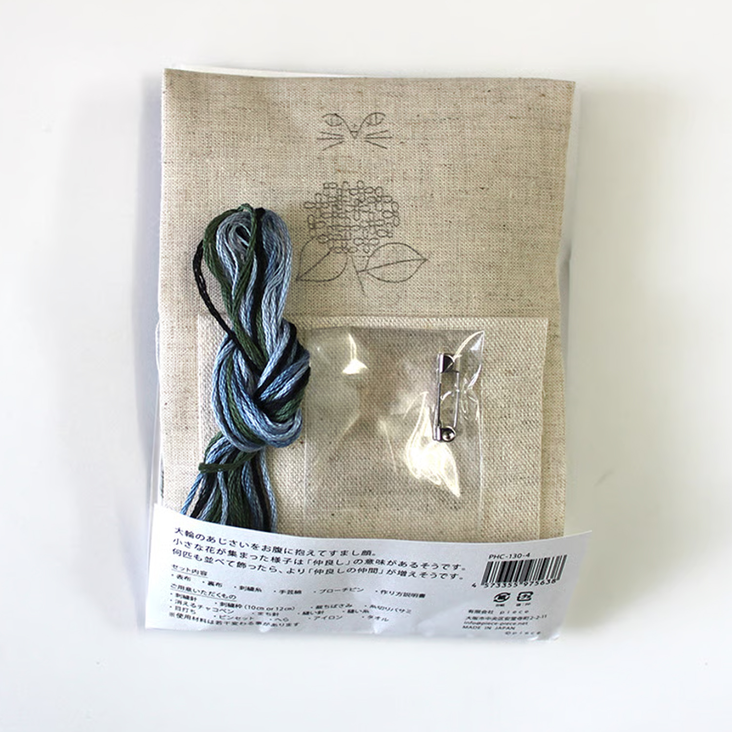 PHC-130-4 刺しゅうキット nekogao 刺繍ブローチ -あじさい- (袋)