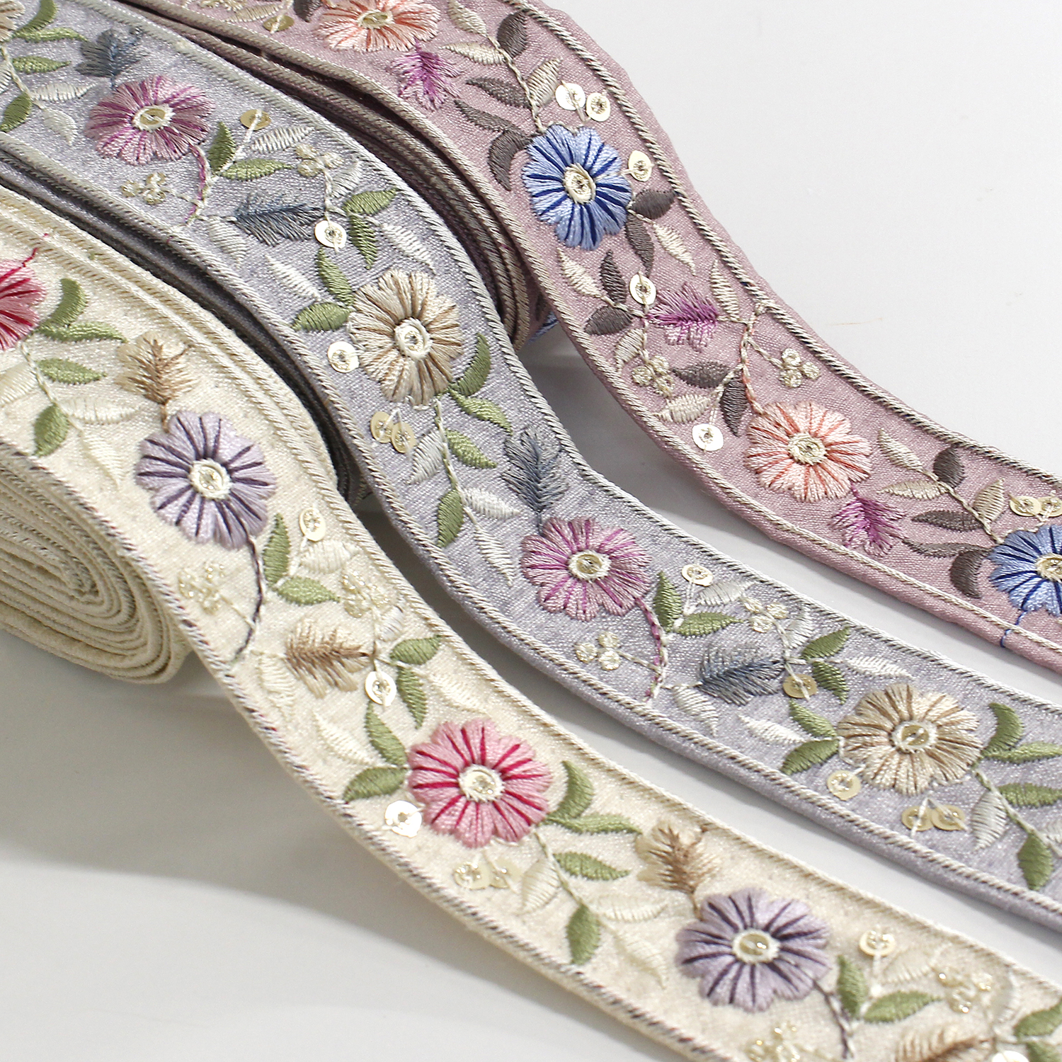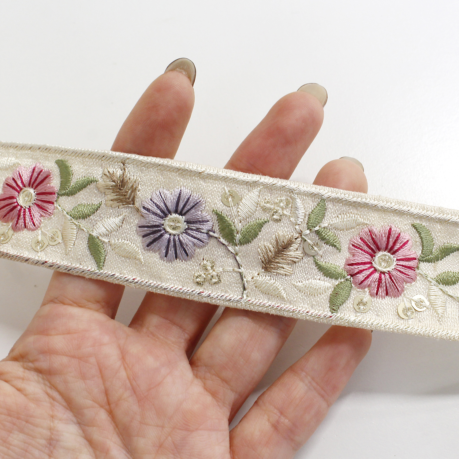 【1227新柄】KF-R16-10Y インド刺繍リボン 巾約3.3cm×原反約9m (巻)