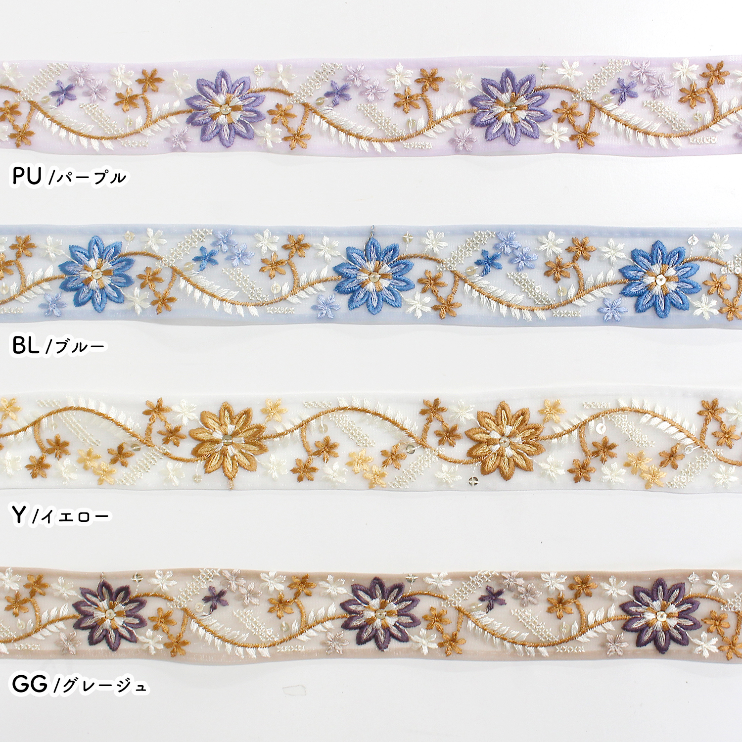 【1227新柄】KF-R17-10Y インド刺繍リボン 巾約4.4cm×原反約9m (巻)