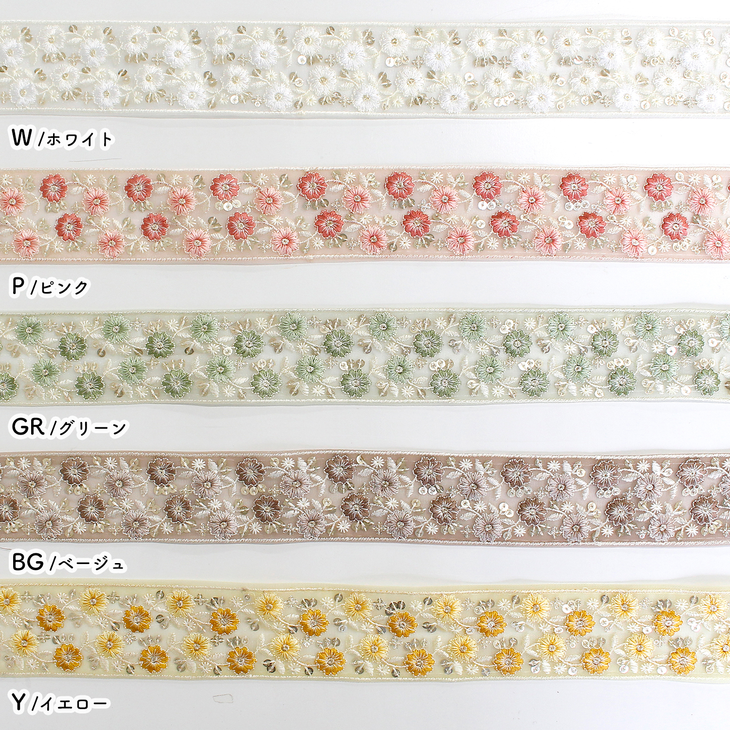 【1227新柄】KF-R71152-10Y インド刺繍リボン 巾約3.5cm×原反約9m (巻)
