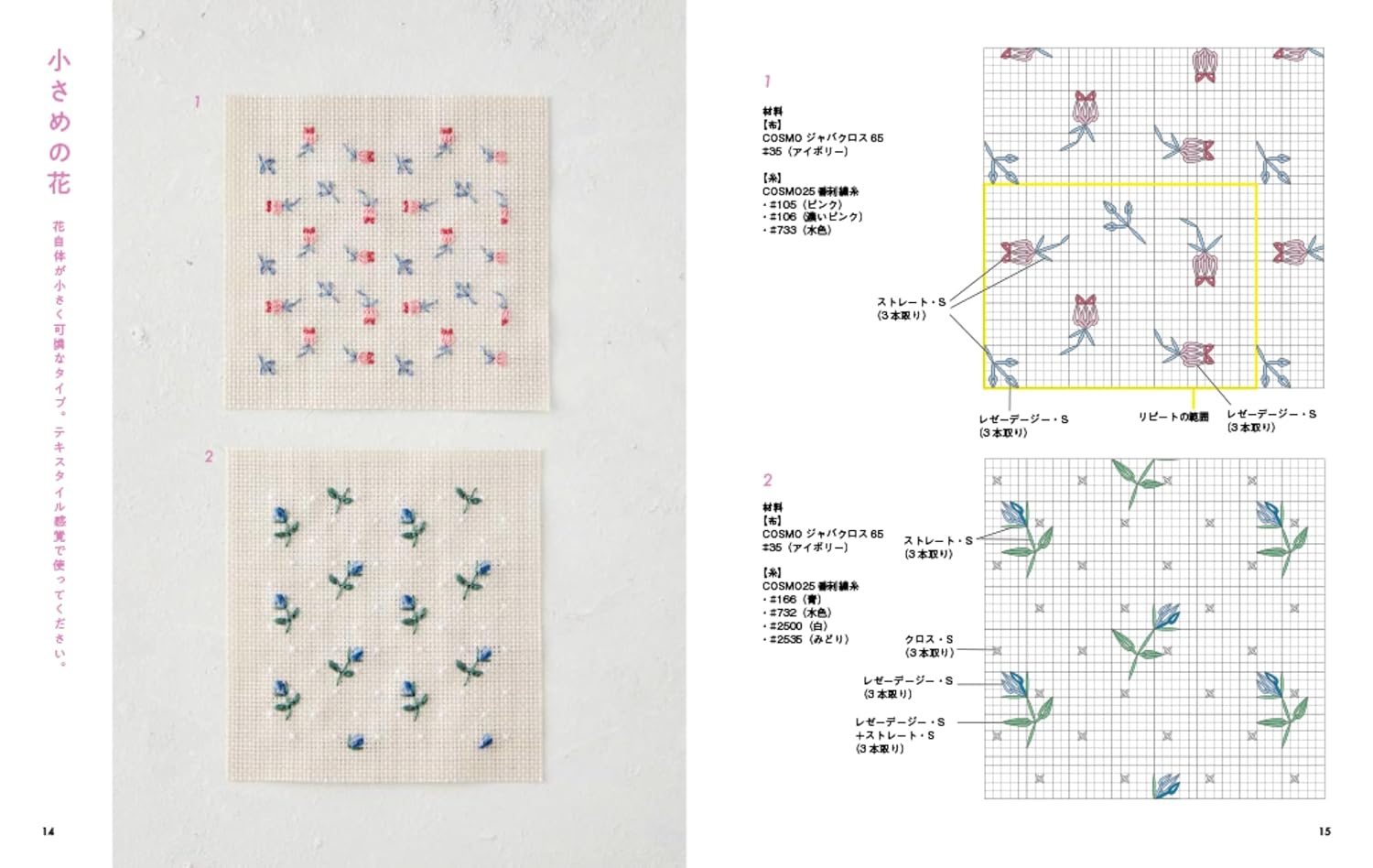 小さくてかわいい花ばかり、55種類の図案を掲載。
