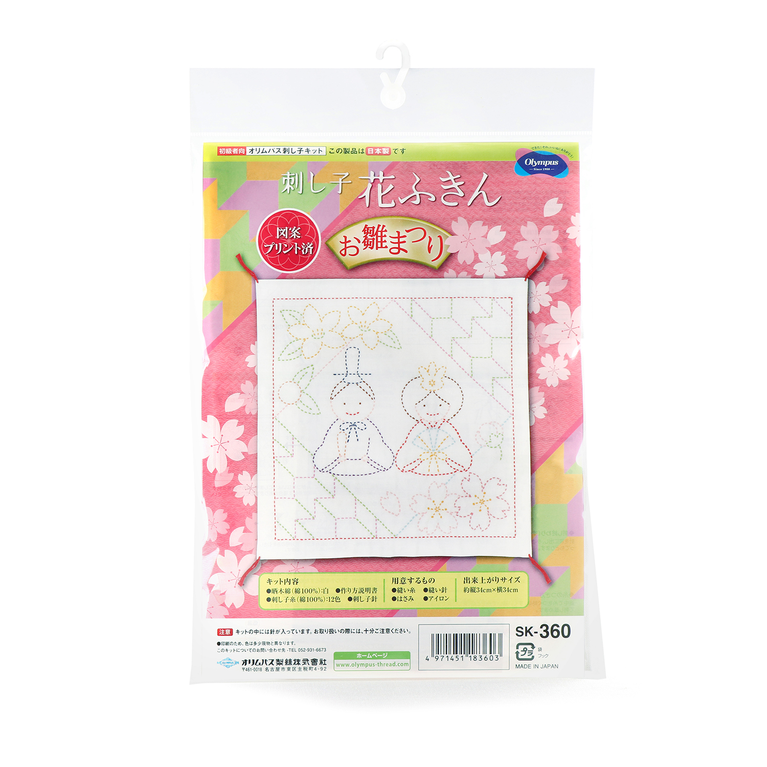 OLY-SK360 ひなまつり 刺し子キット 花ふきんキット (袋)