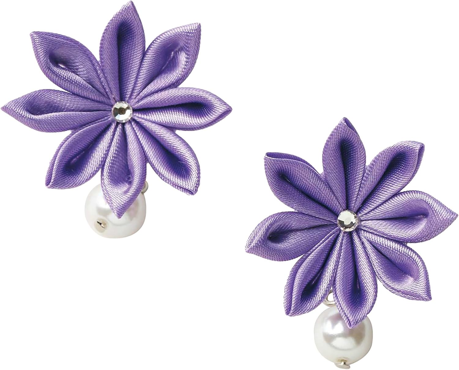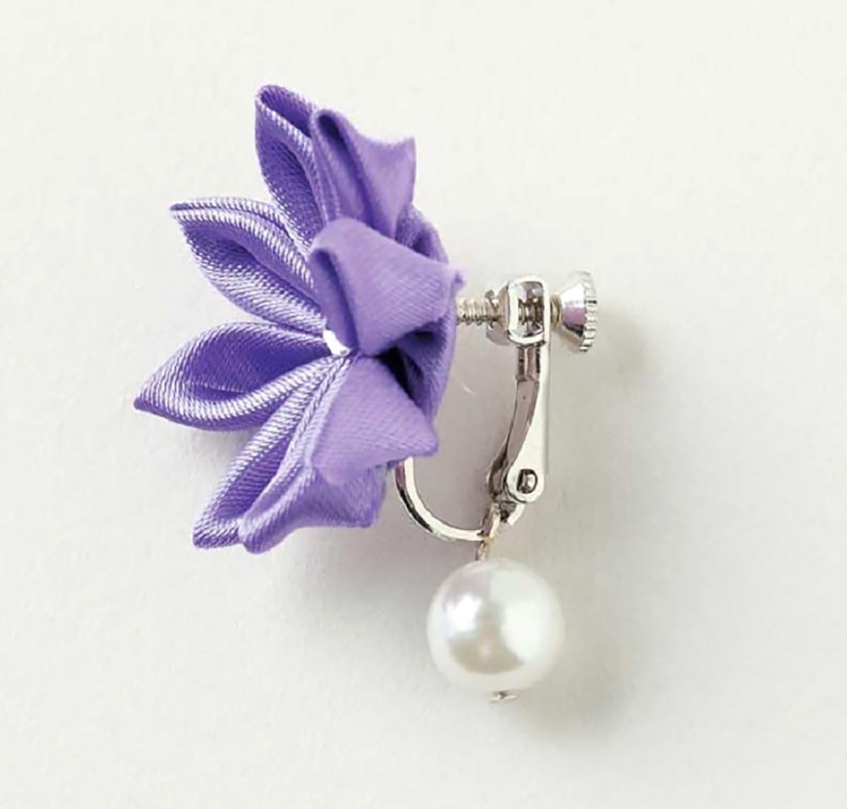 サテン生地で作る上品で可愛らしい光沢のあるつまみ細工のイヤリングです。