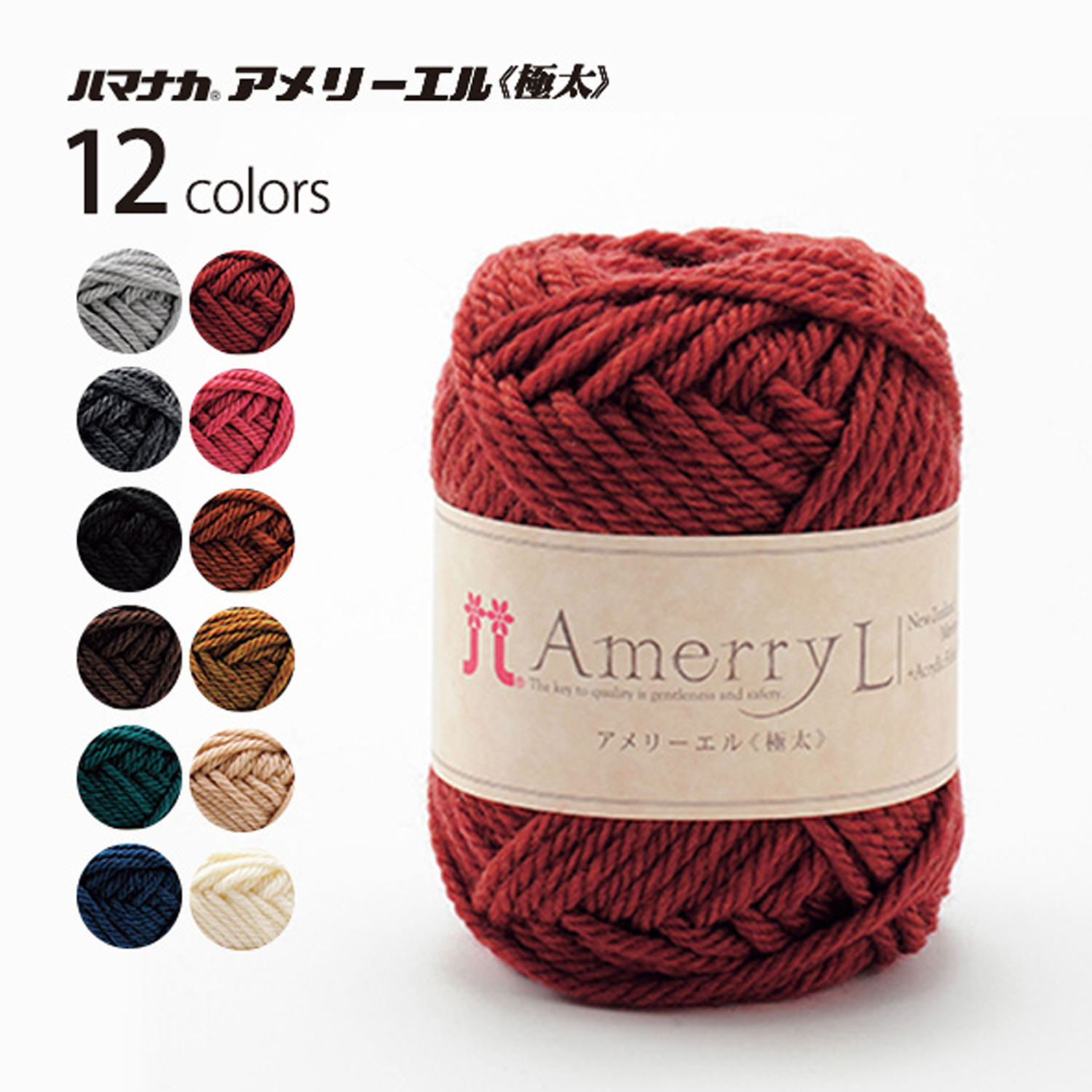 アメリーは、ニュージーランドメリノウールとアクリルをブレンドした毛糸で、肌触りが良く、弾力性と保温性に優れています。