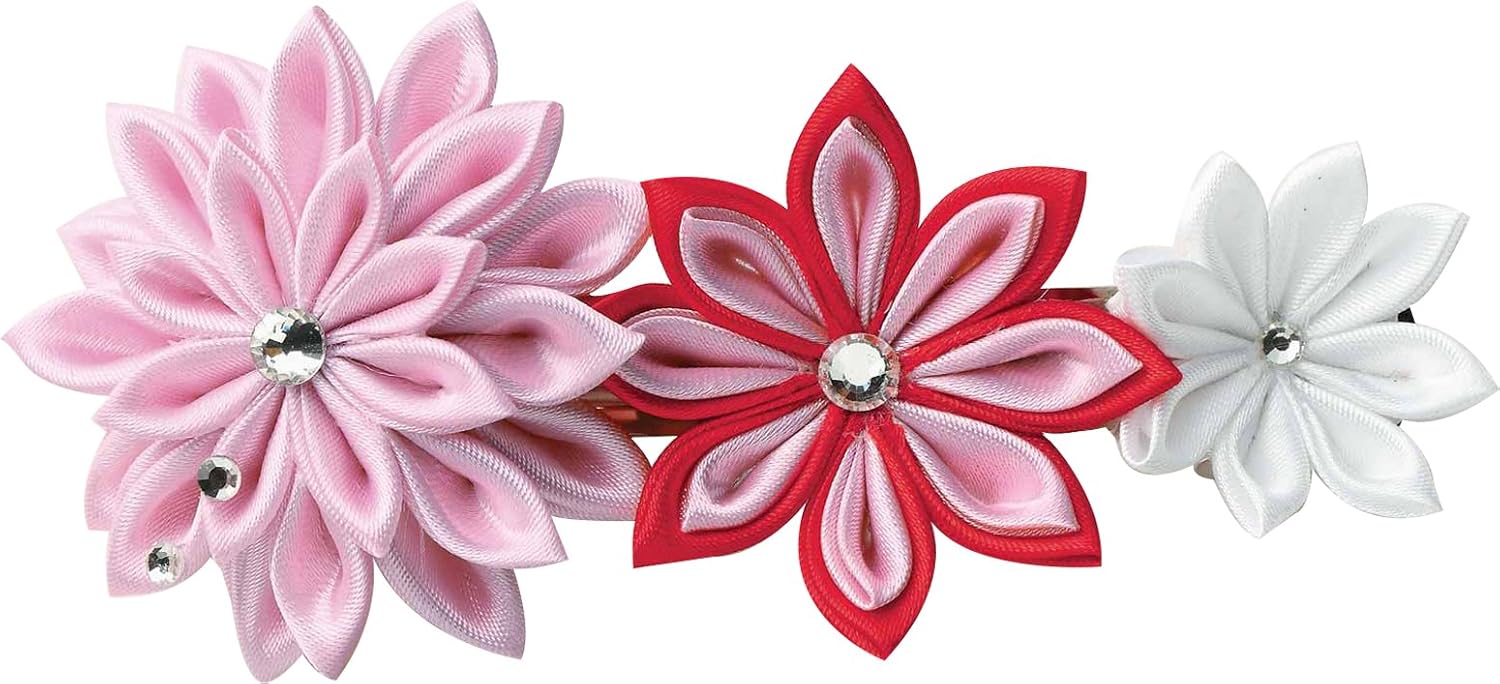サテン生地で作る上品で可愛らしい光沢のあるつまみ細工のバレッタです。
