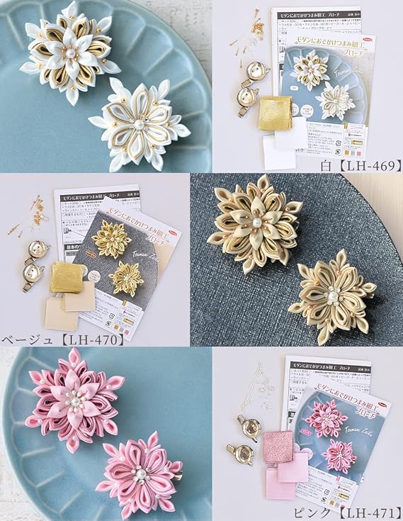 サテンとラメ生地を組み合わせて作るつまみ細工キットが新登場!