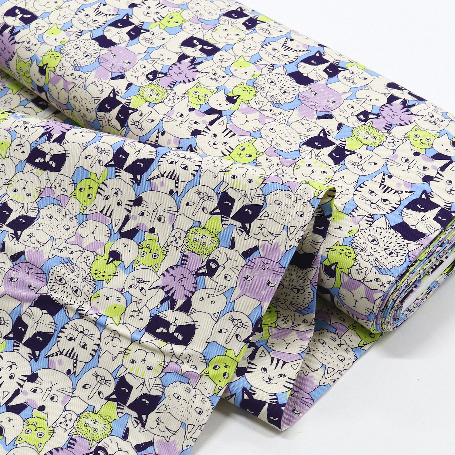 【1/28まで】【WEB限定・原反特価】■B850536-1-2 ねこがいっぱい オックス プリント生地 原反 (巻)