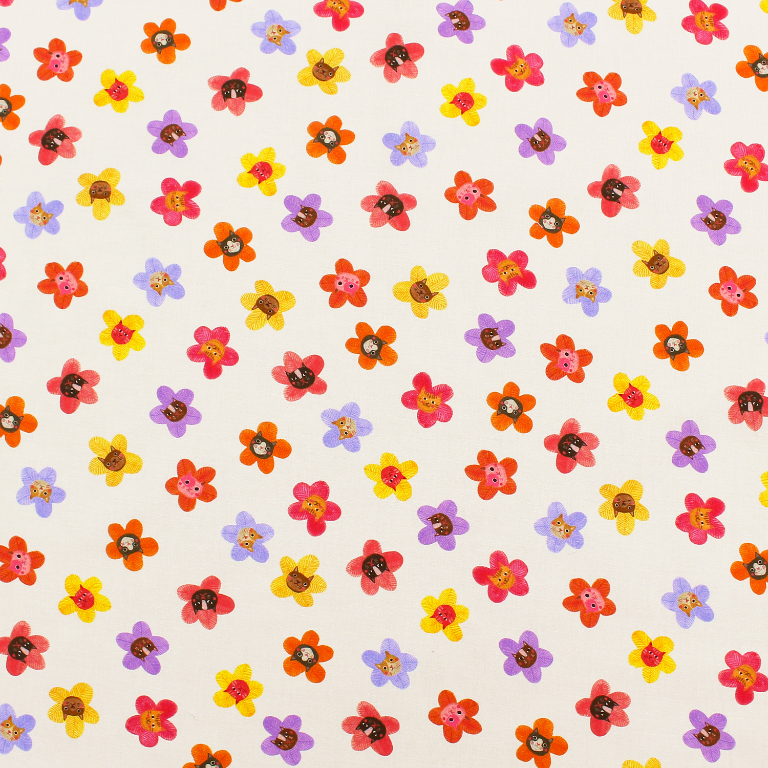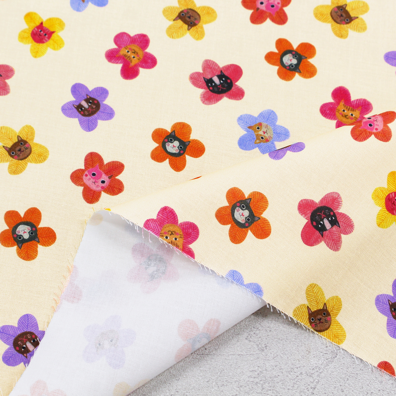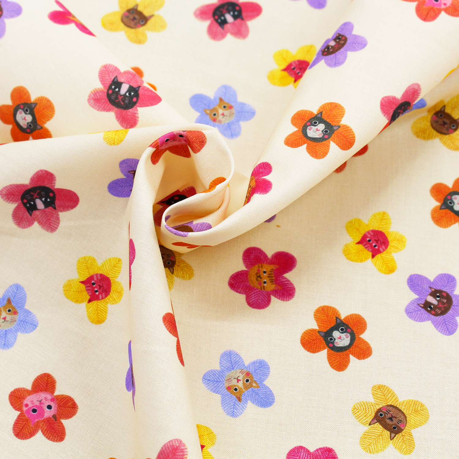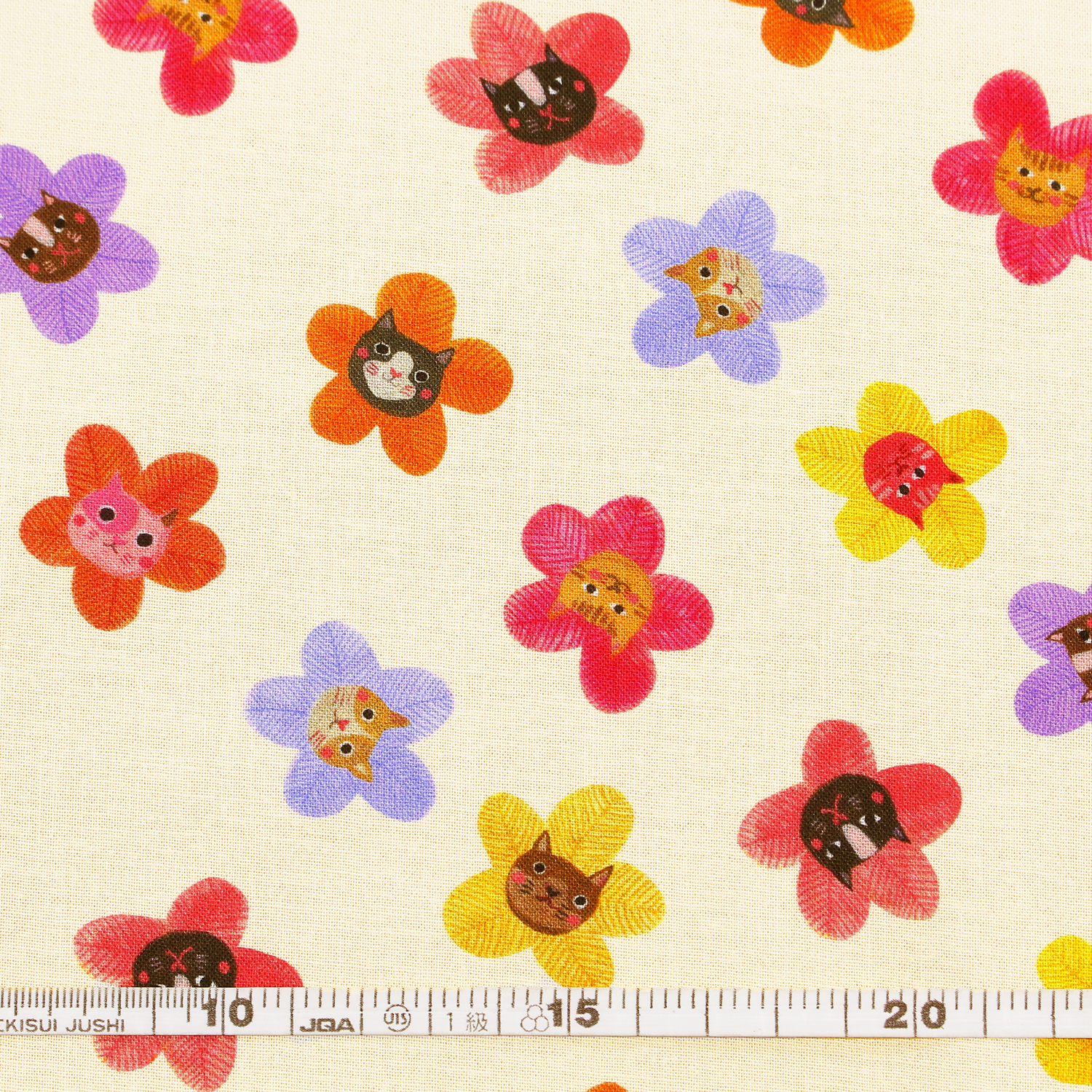 【0116新柄】ROB23288-84 クリーム地 ネコの花 ROBERT KAUFMAN ロバートカフマン USAプリント 巾約110cm 1m単位 (m)