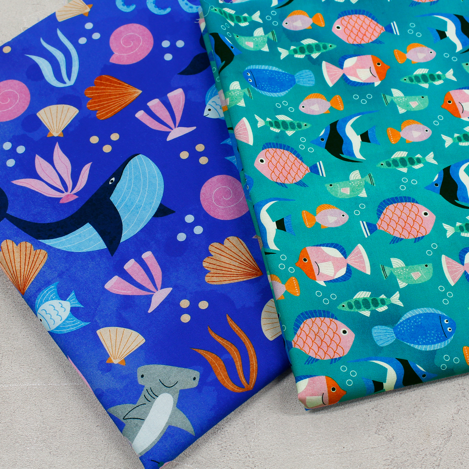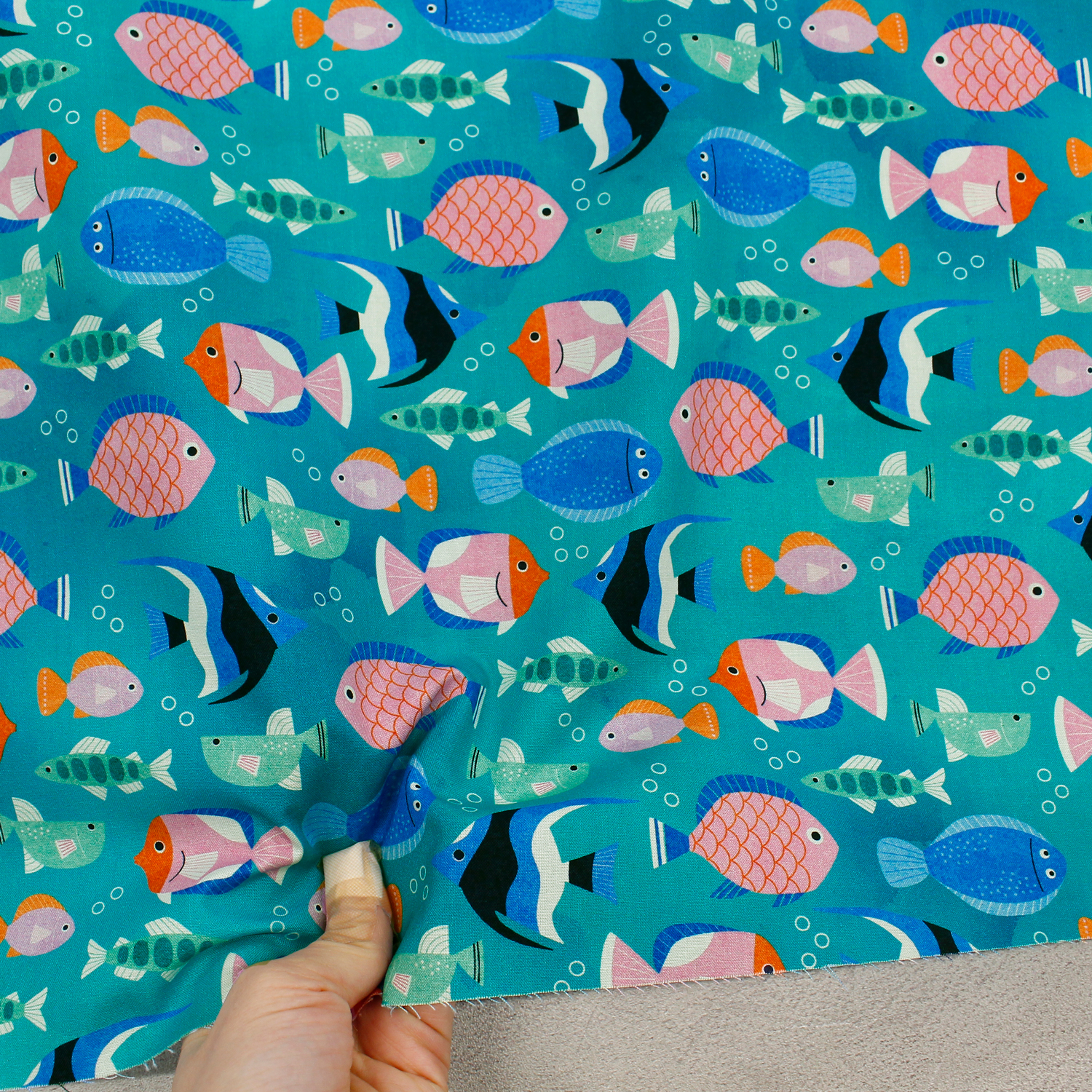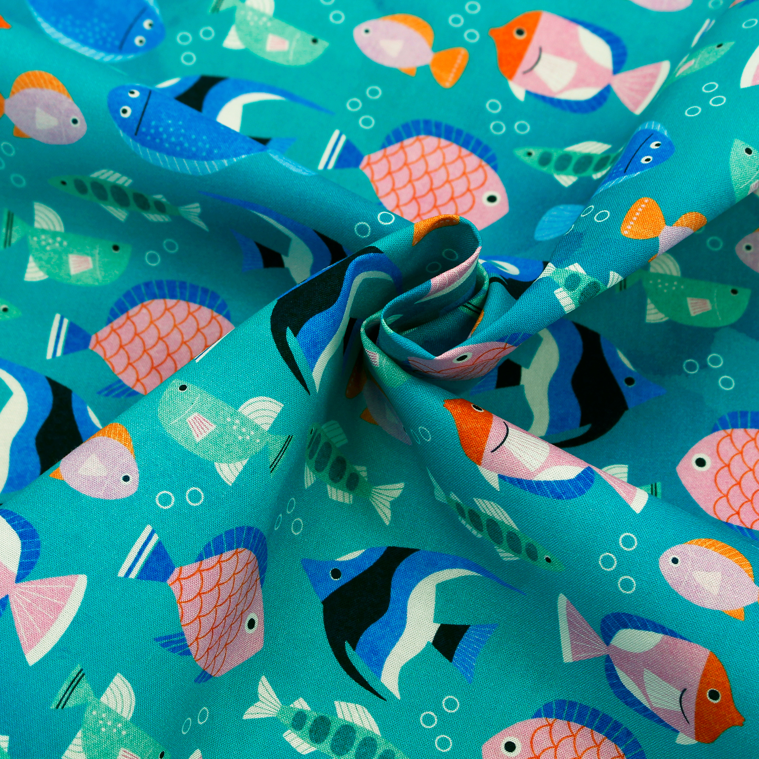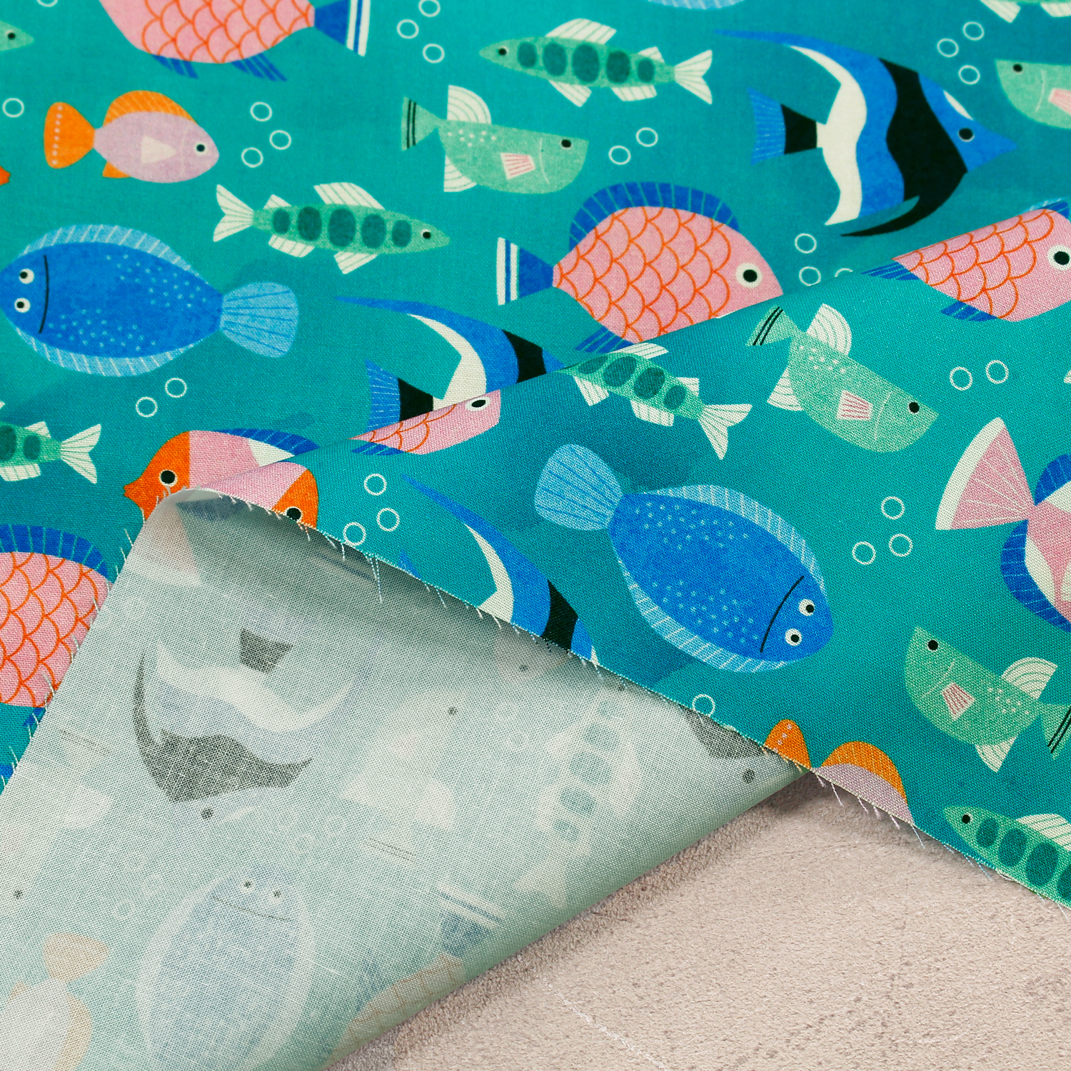 【0116新柄】ROB23362-213 エメラルドグリーンさかな柄 ROBERT KAUFMAN ロバートカフマン USAプリント 巾約110cm 1m単位 (m)