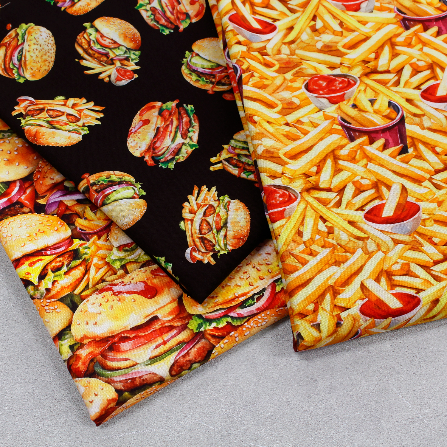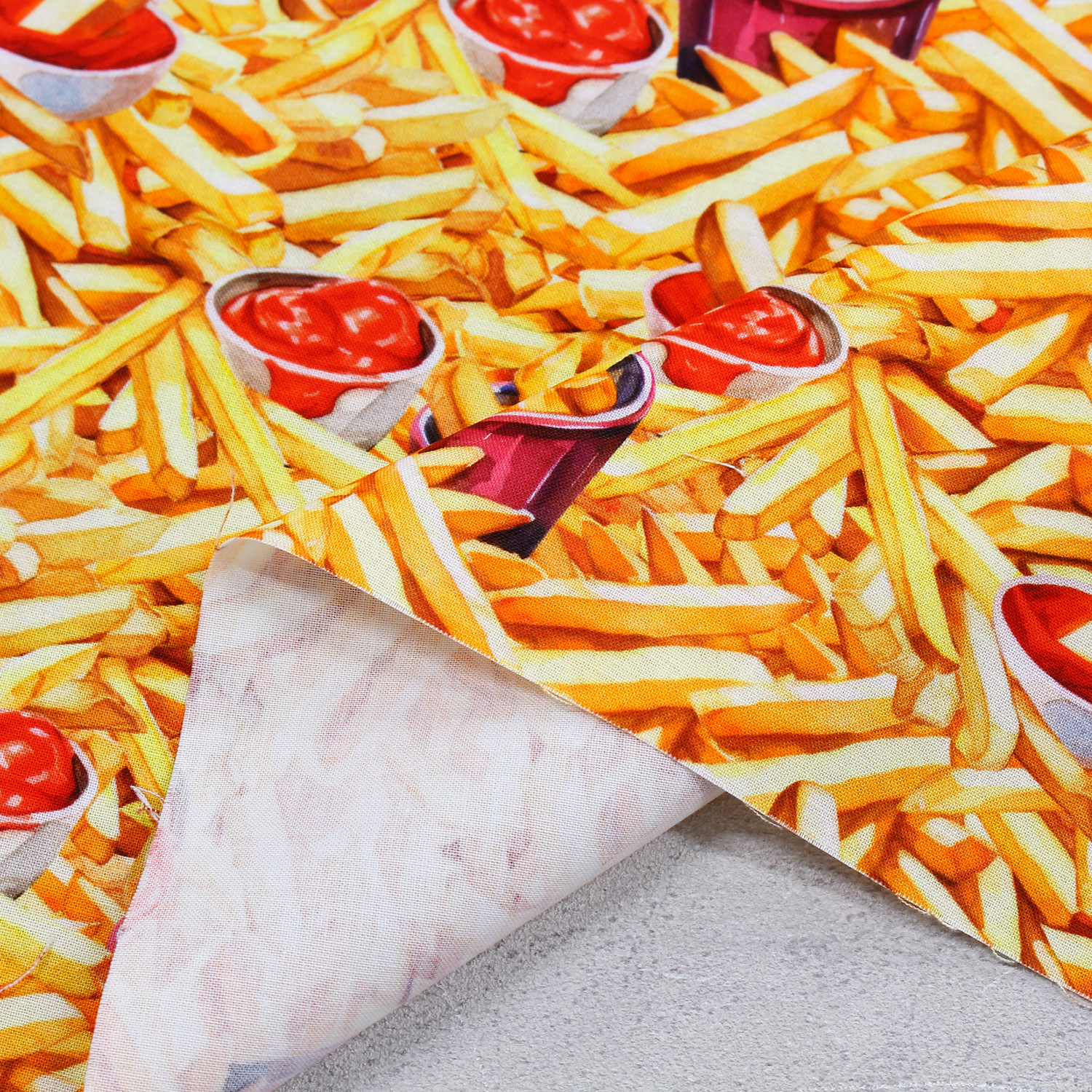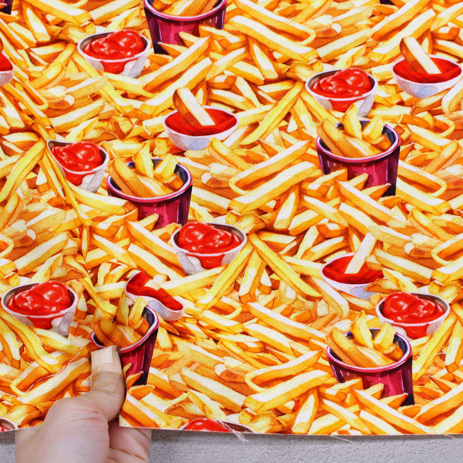 【0116新柄】ROB23297-133 フライドポテトとケチャップ ROBERT KAUFMAN ロバートカフマン USAプリント 巾約110cm 1m単位 (m)